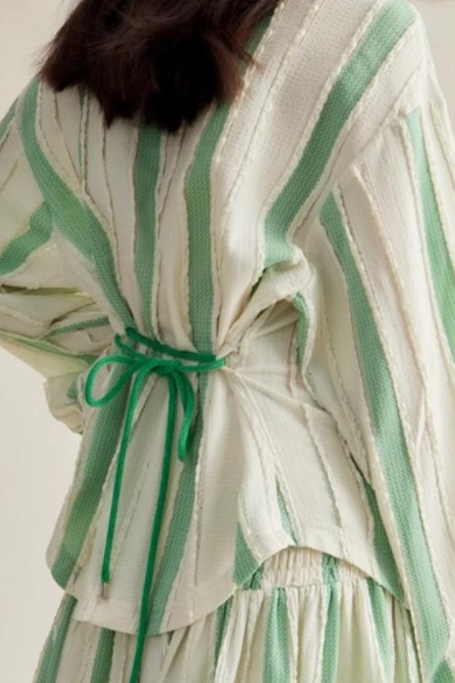 | サイズ | 着丈 | 胸囲 | ヒップ | 肩幅 | 袖丈 | 袖口 |