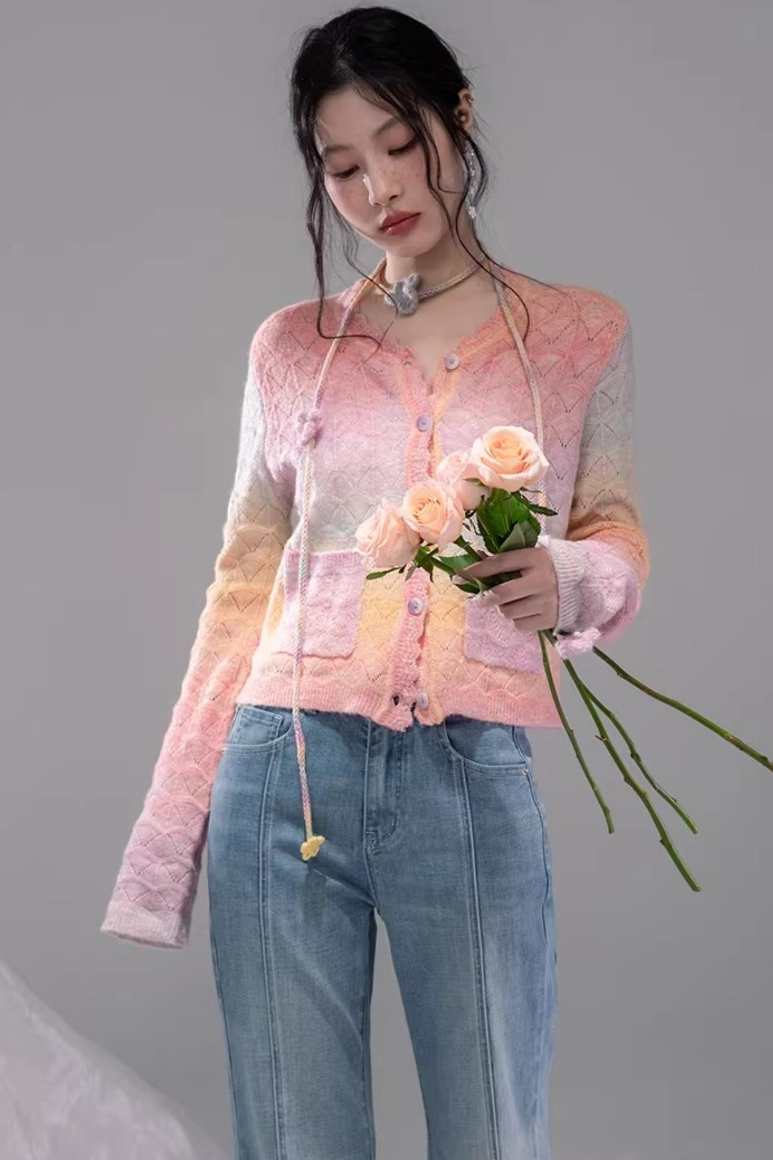 Gradient Rainbow Wool Knit Cardigan