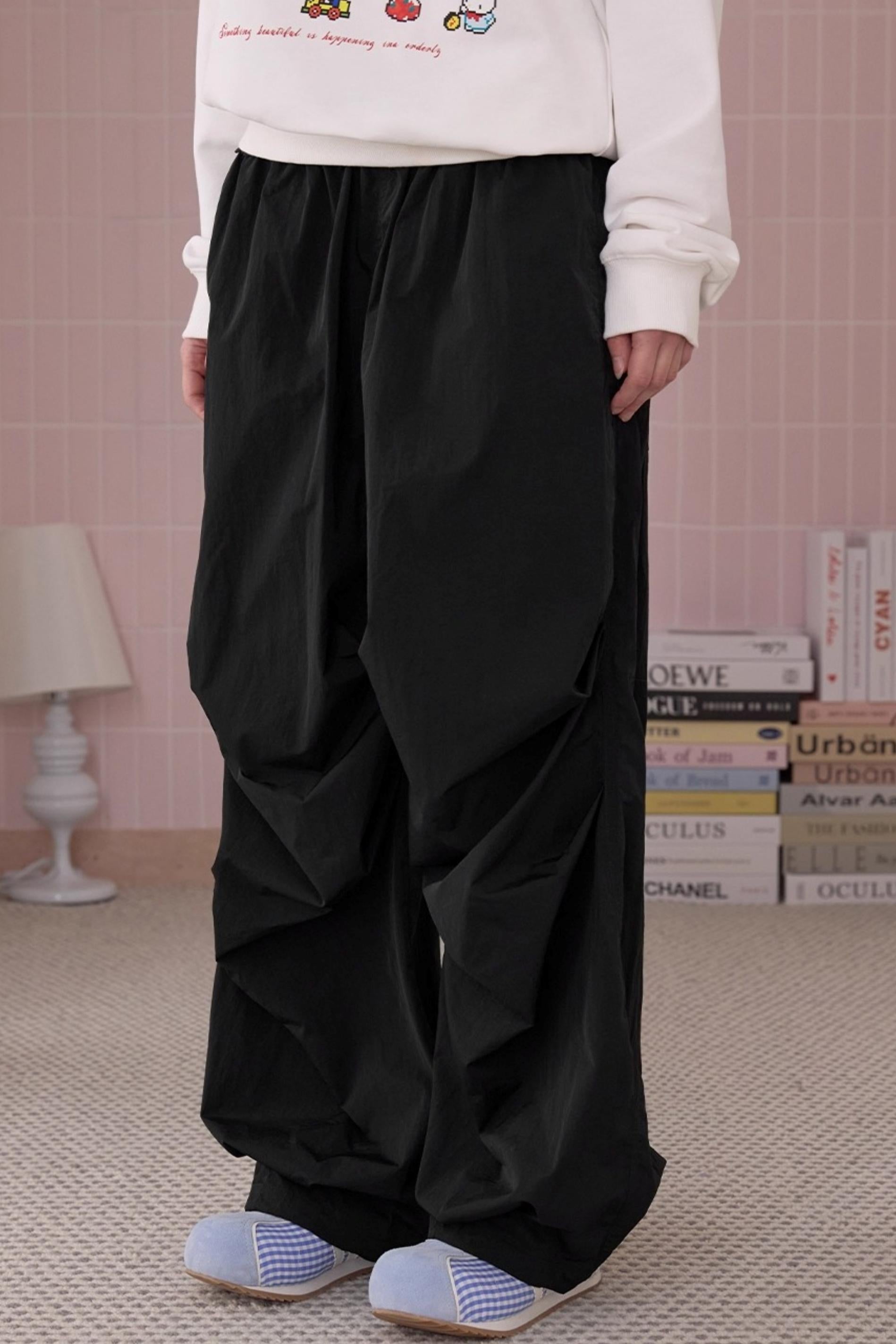 Loose Pleated Parachute Pants