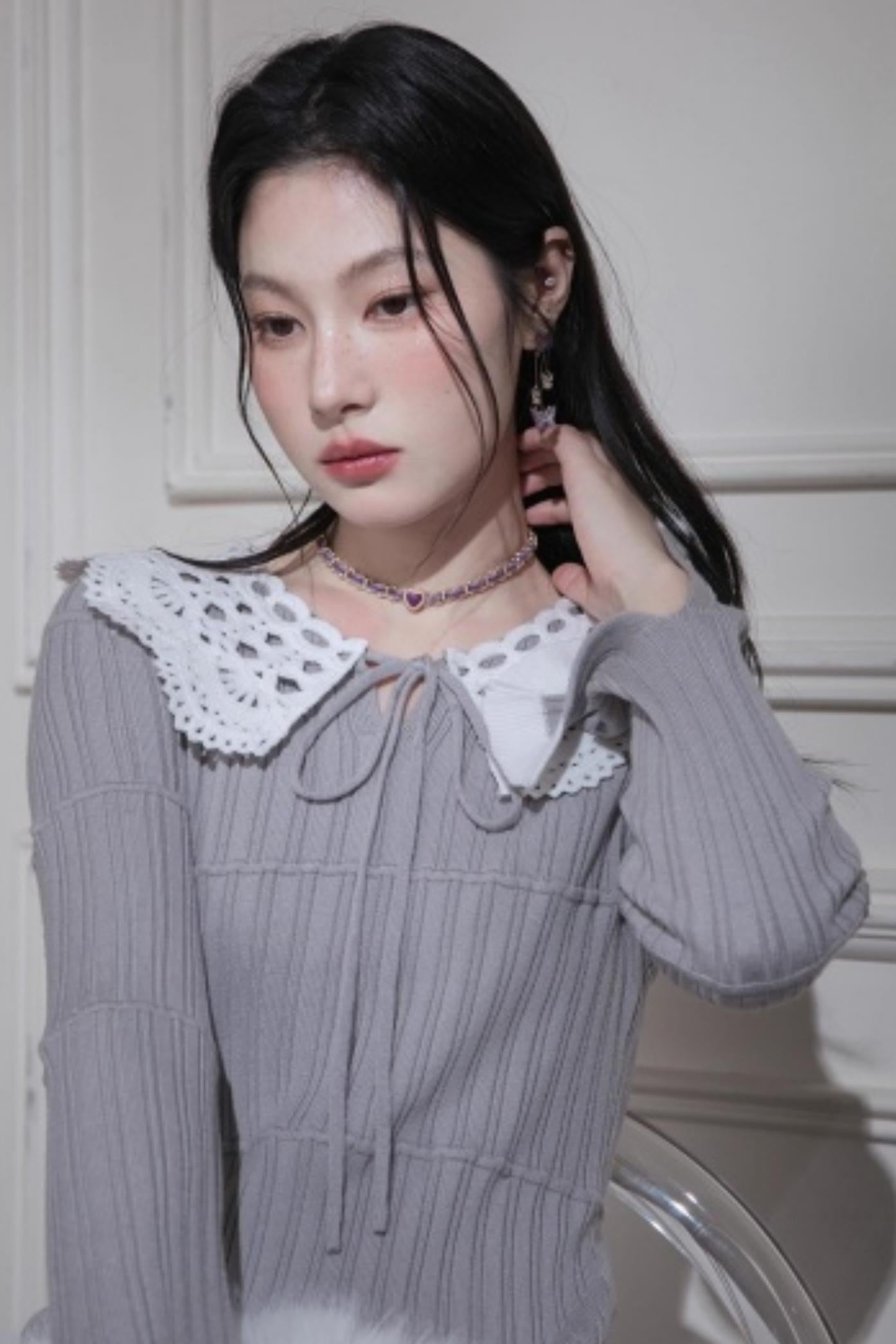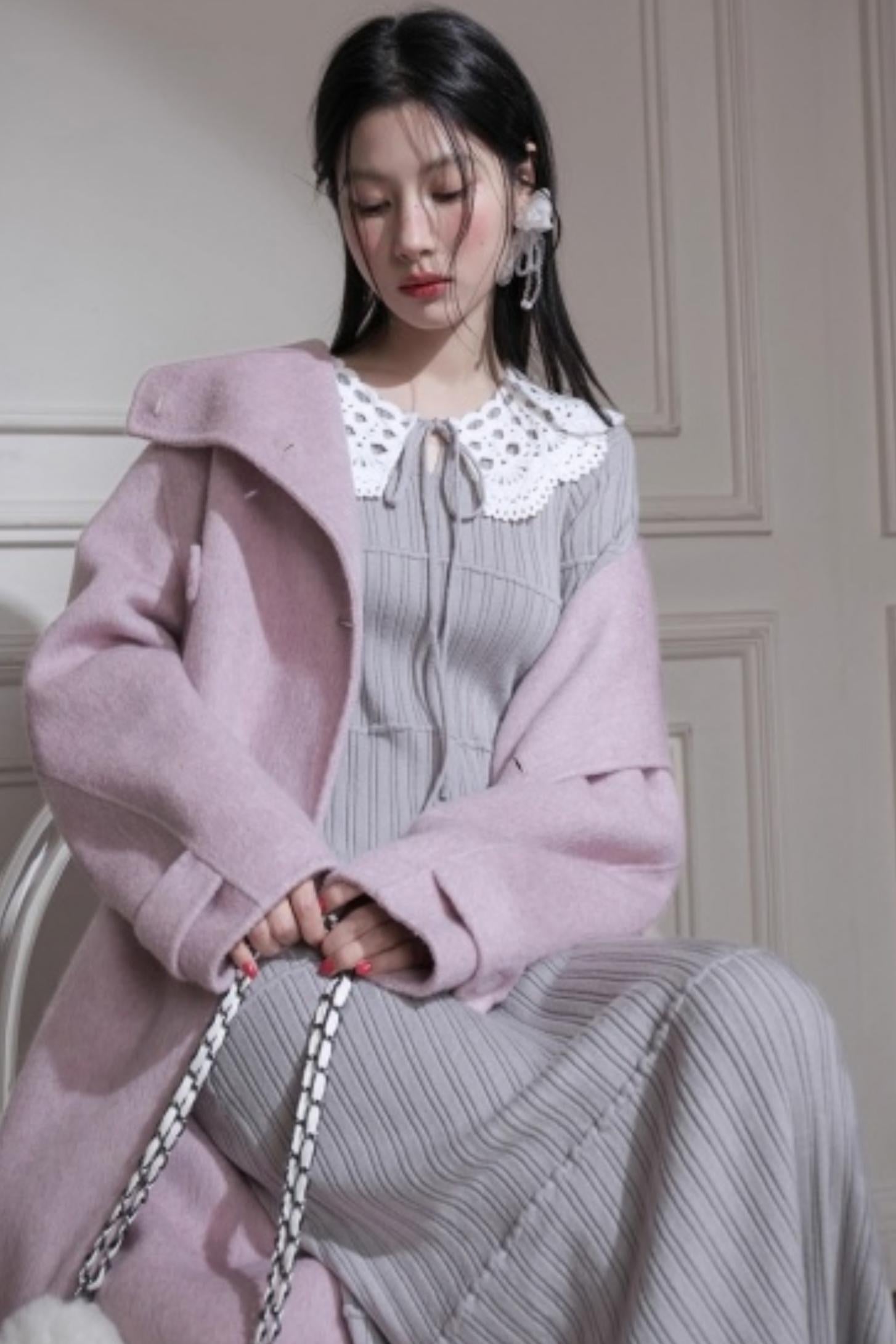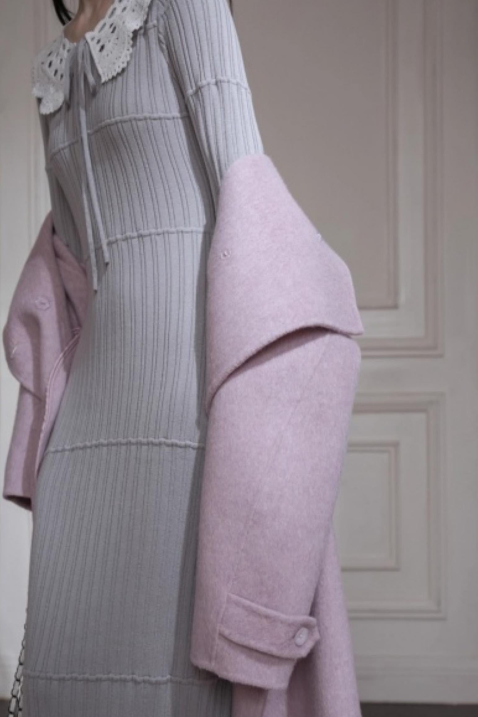 Mist Gray Lace Wool Dress