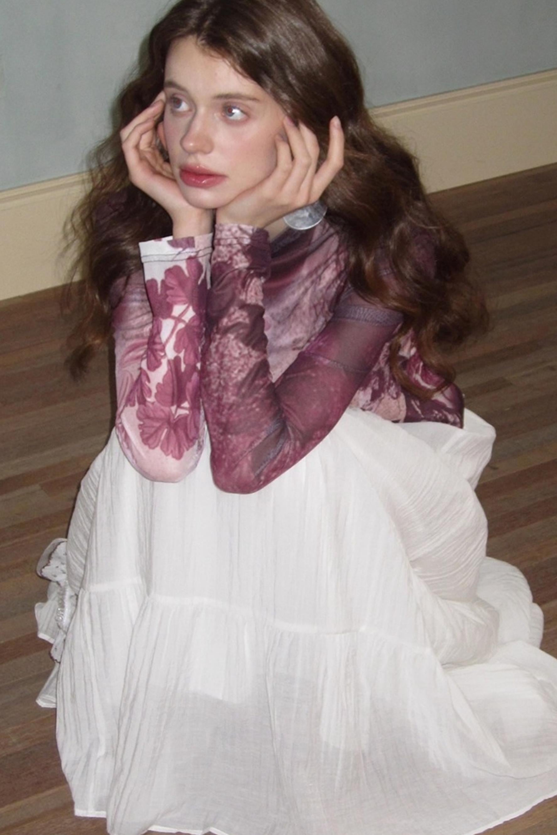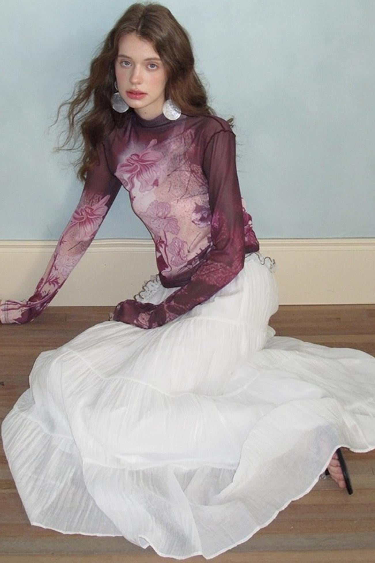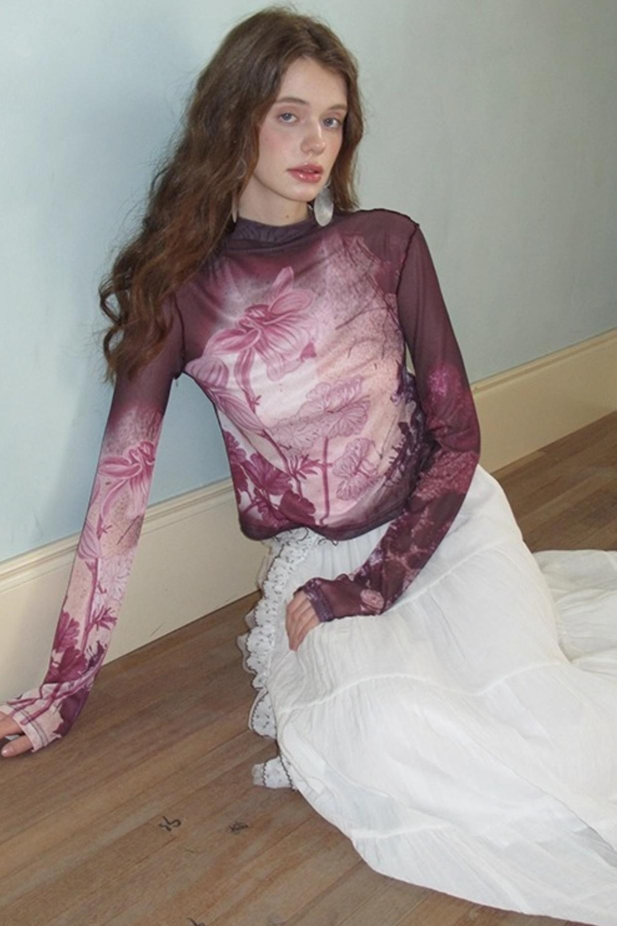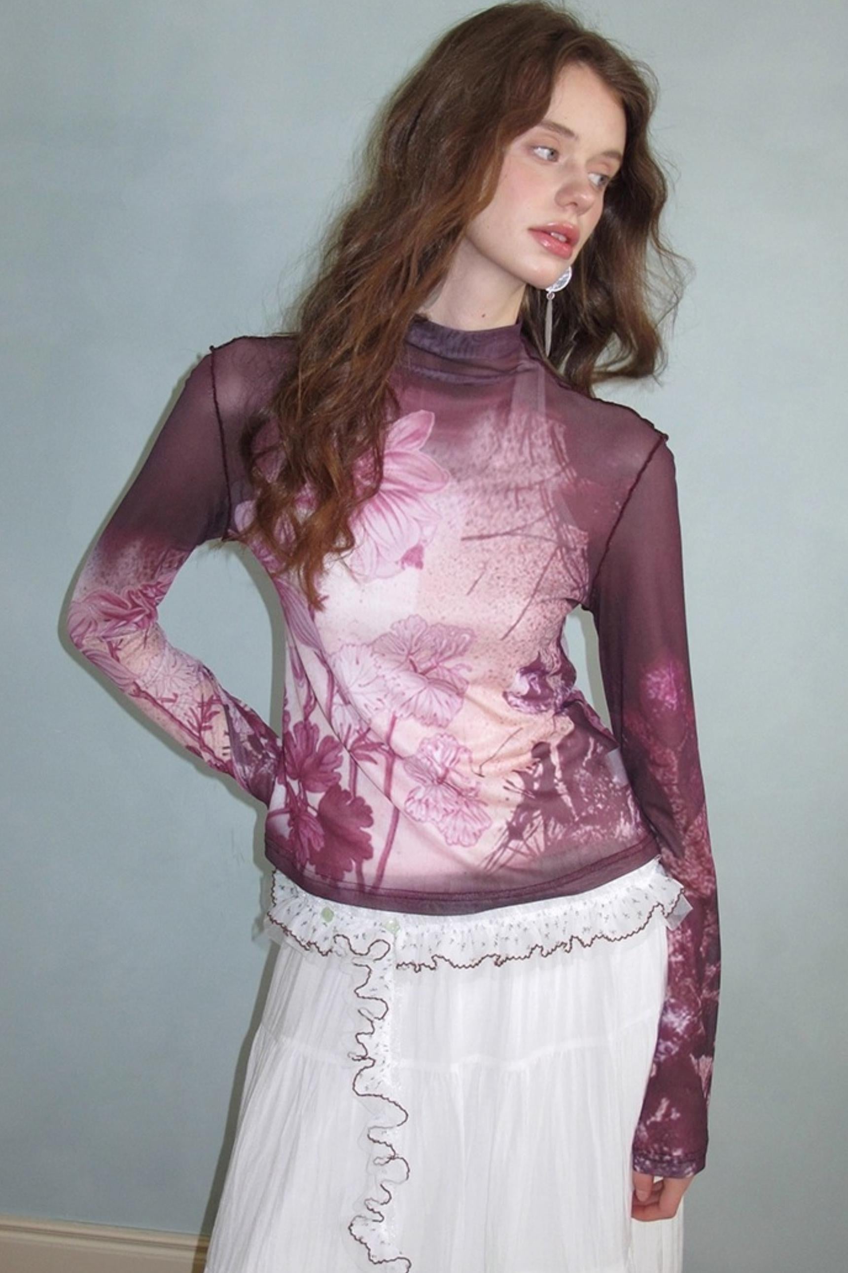 Neoclassical Vintage Turtleneck Mesh T-shirt