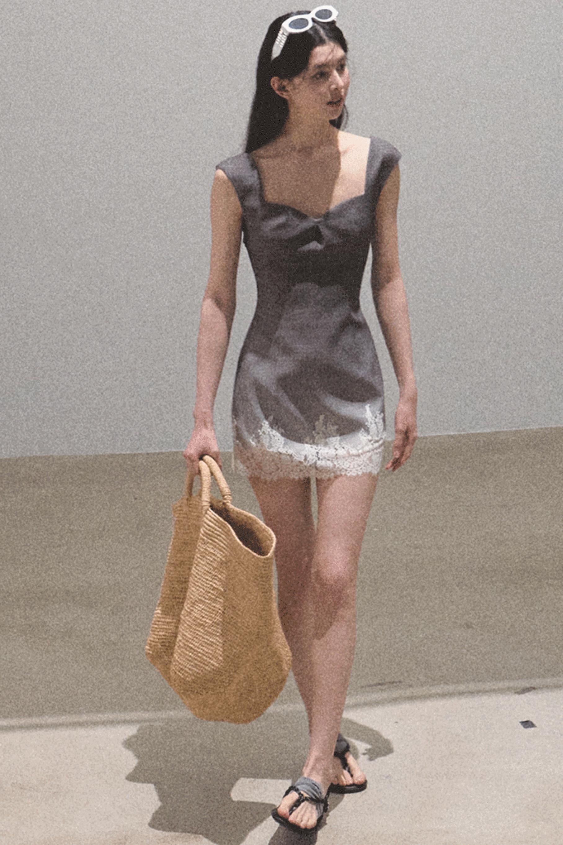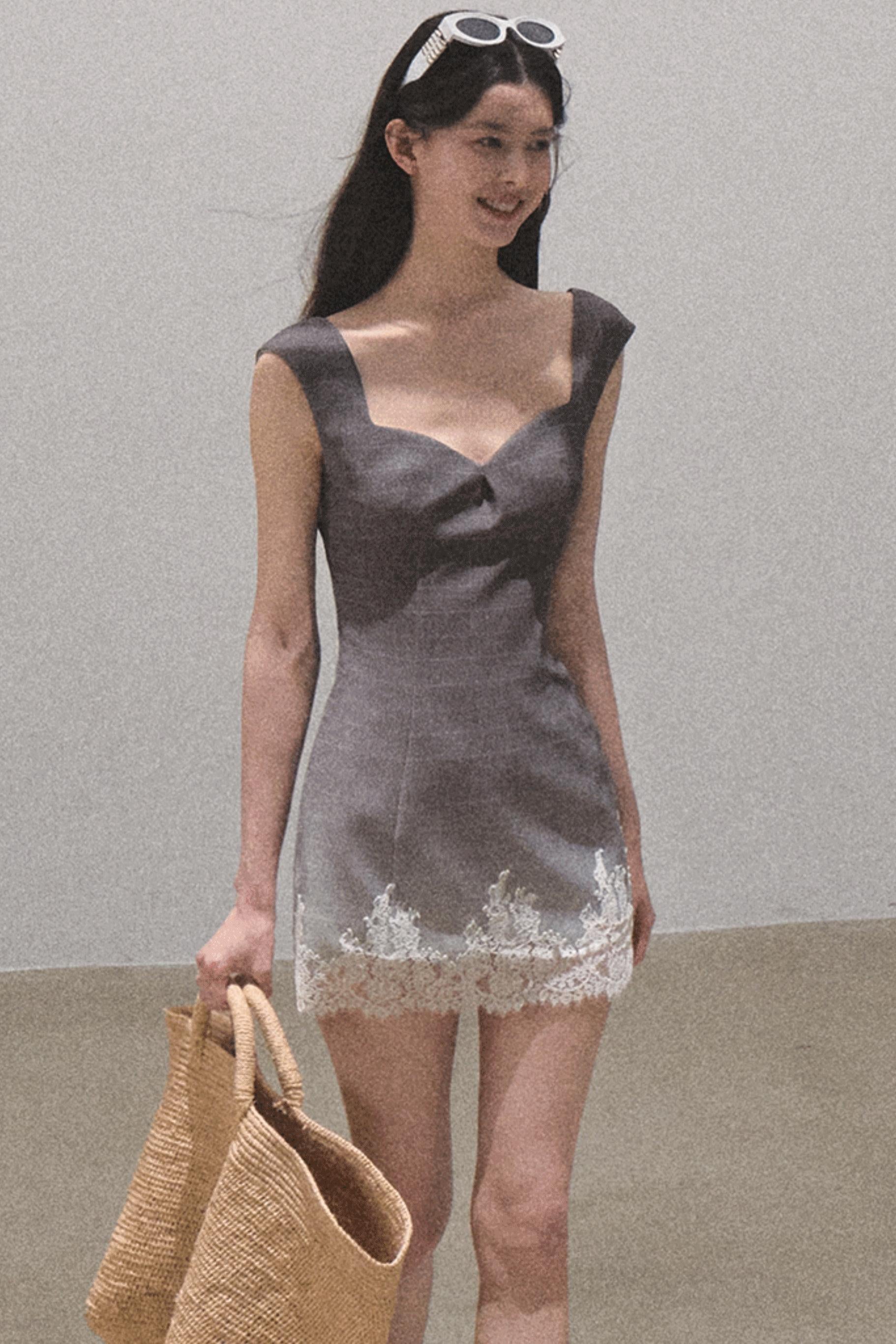 Nightfall Gingham Lace Mini Dress