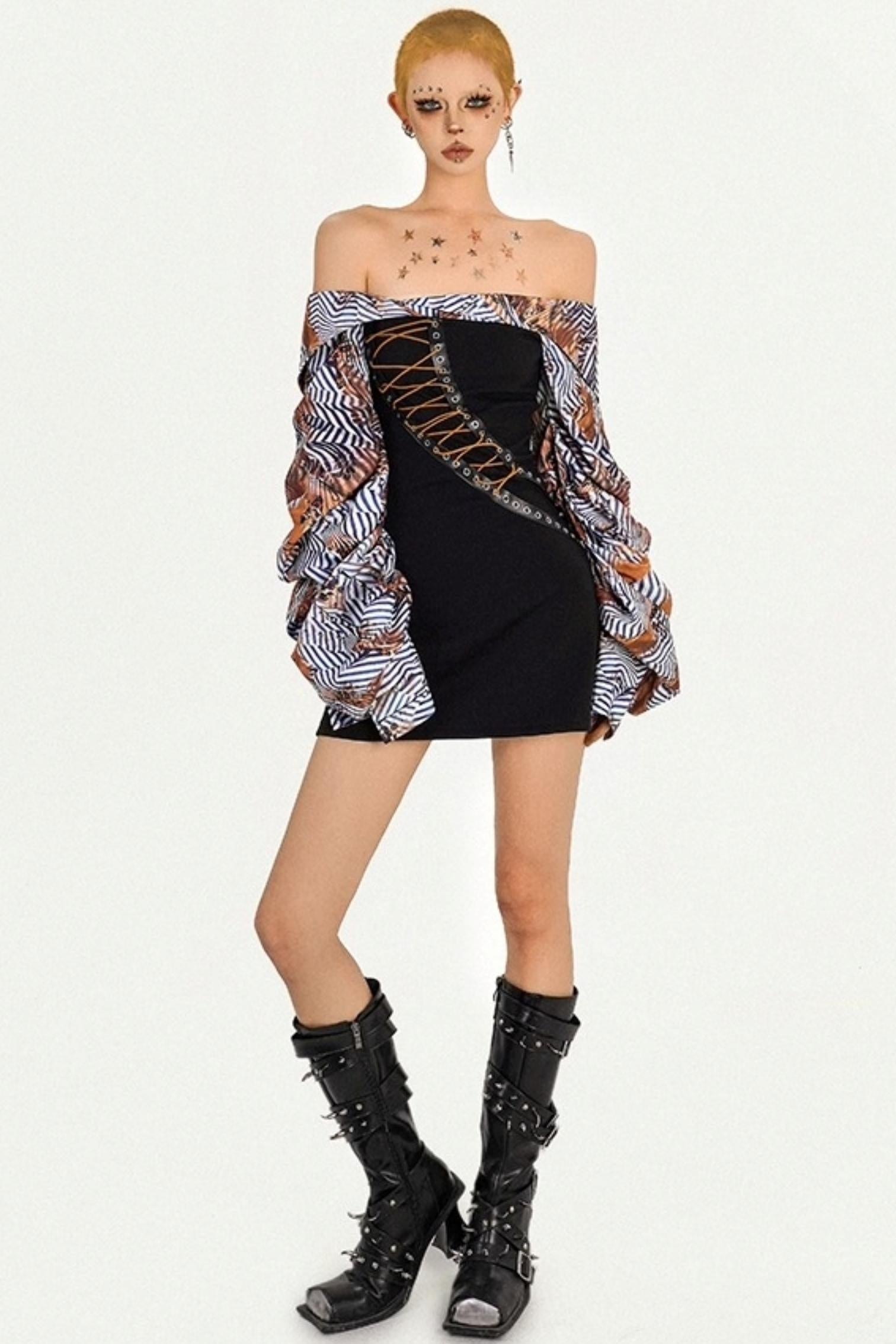Original Spice Patchwork One-Shoulder Dress