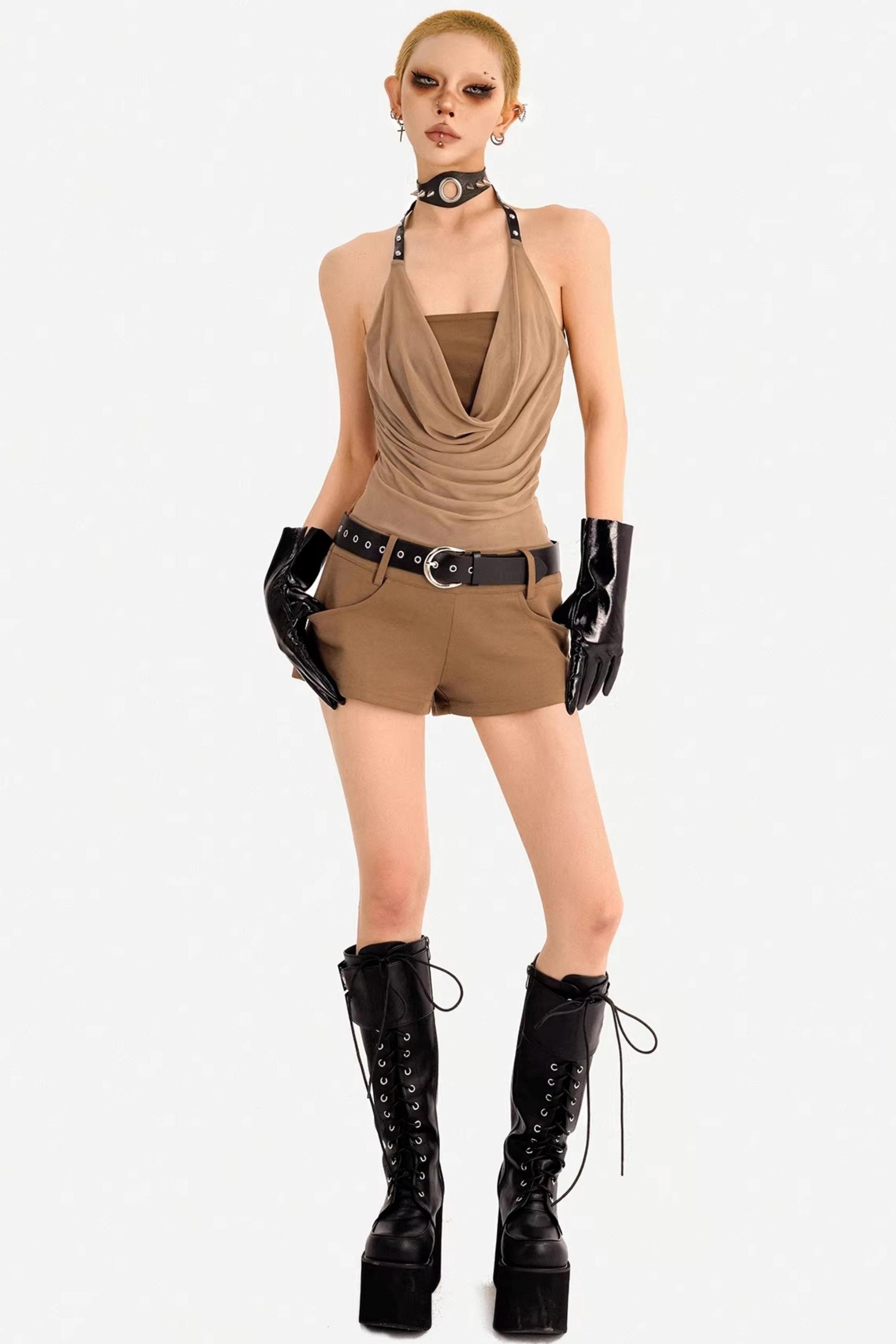 Patchwork Halter Neck Jumpsuit Set