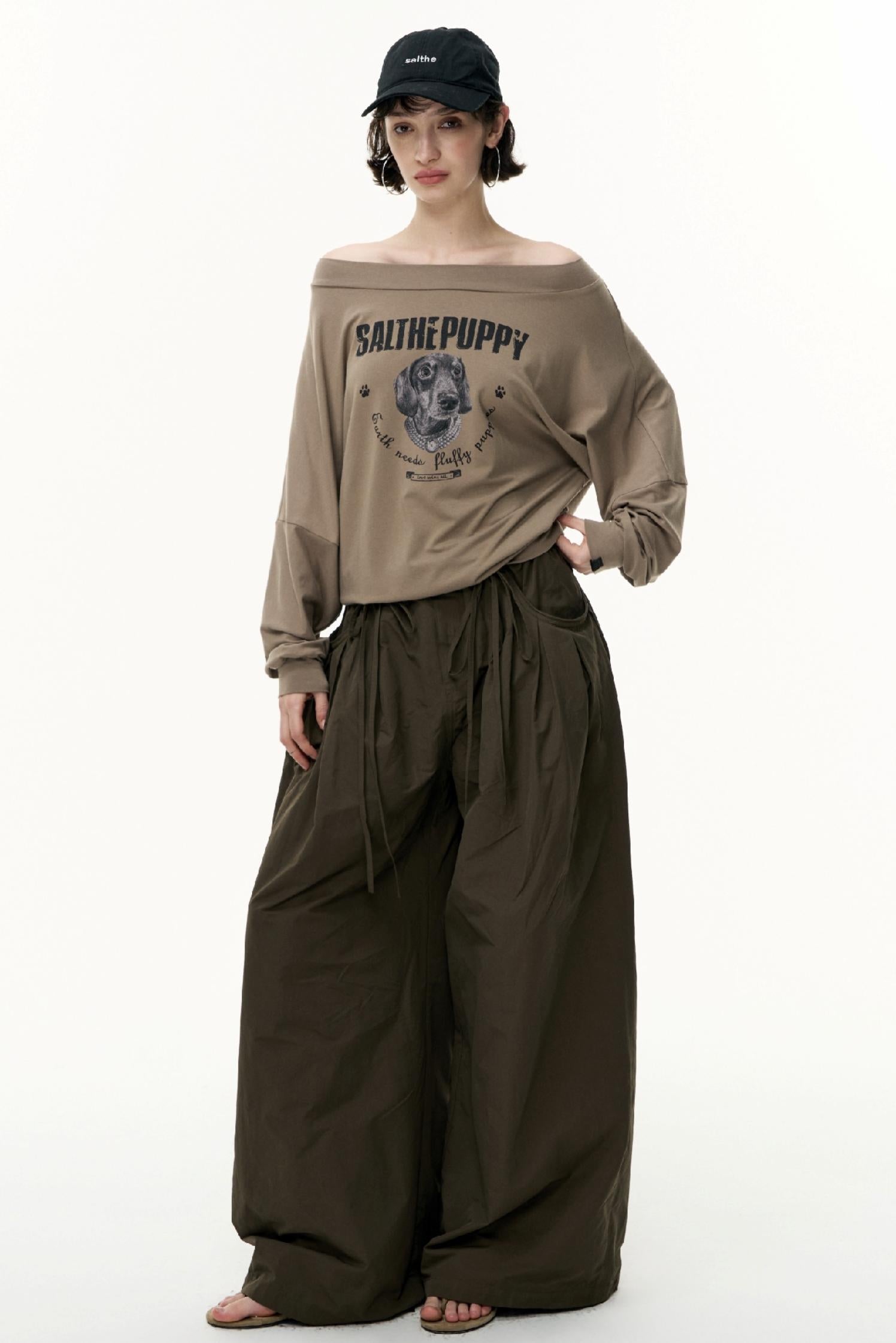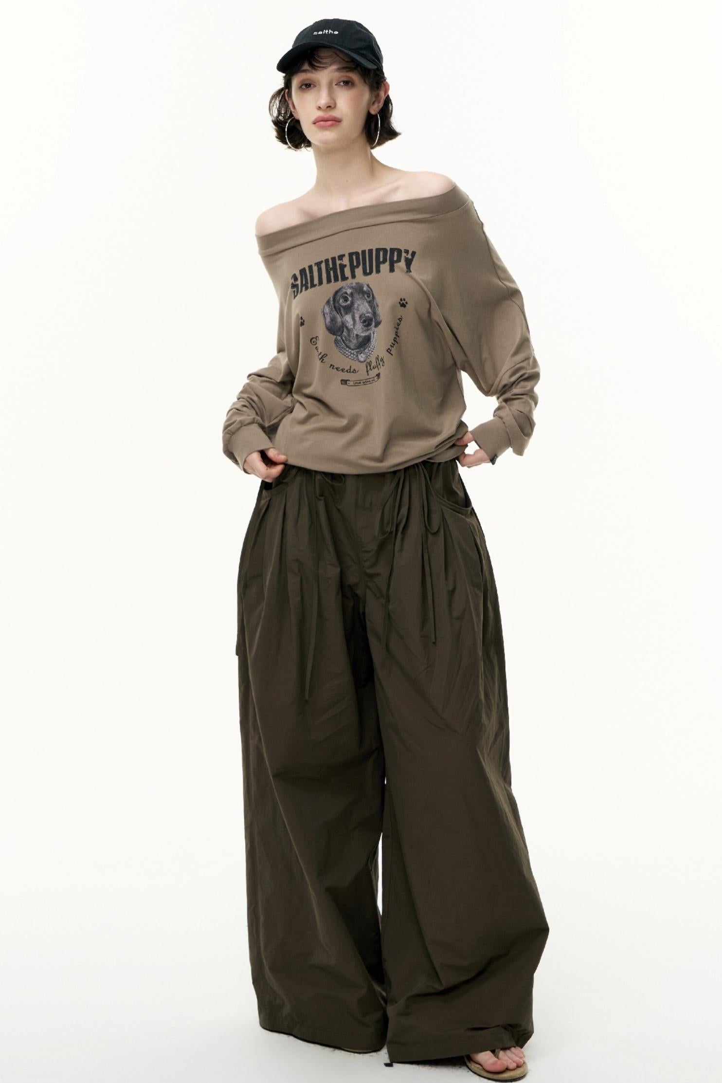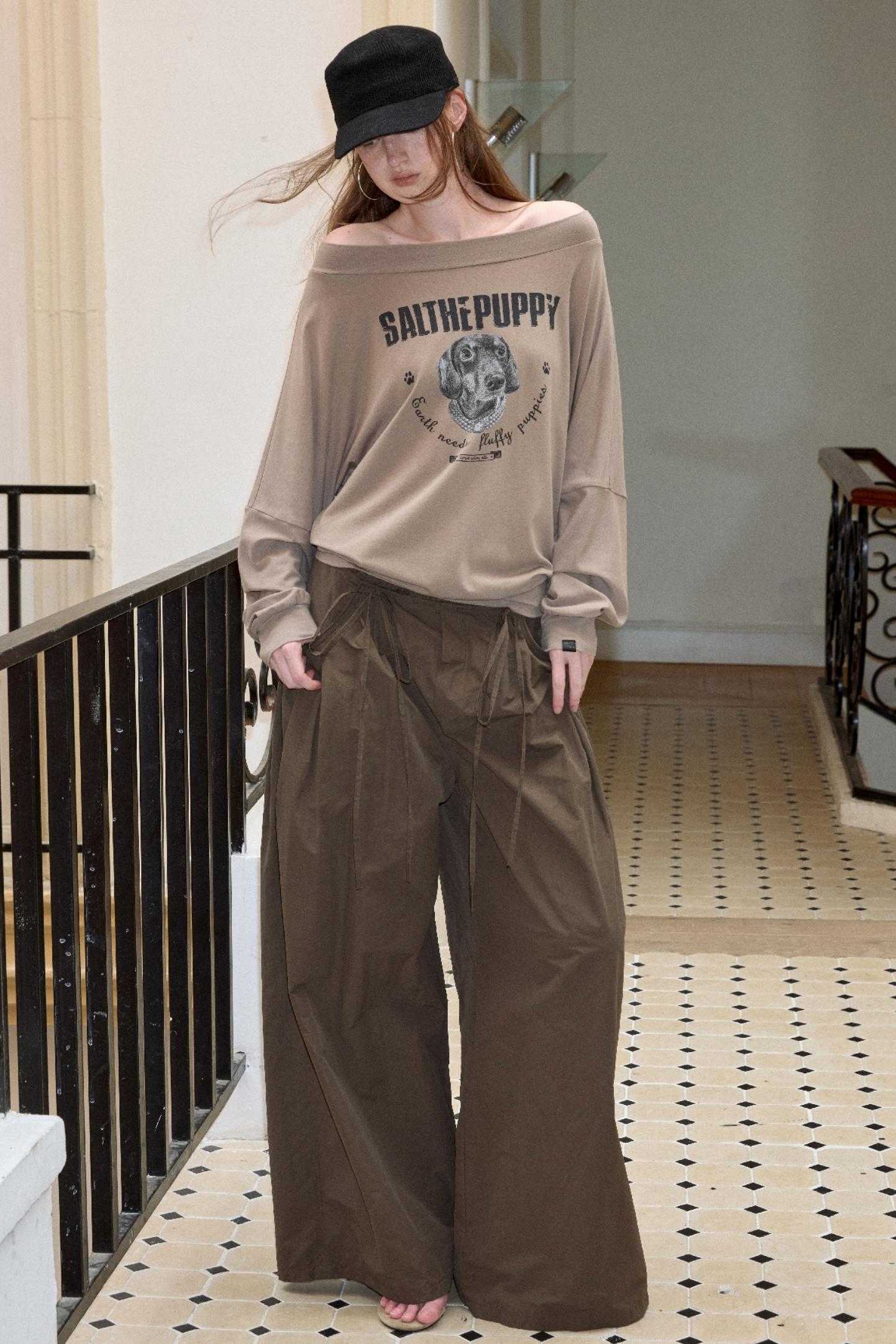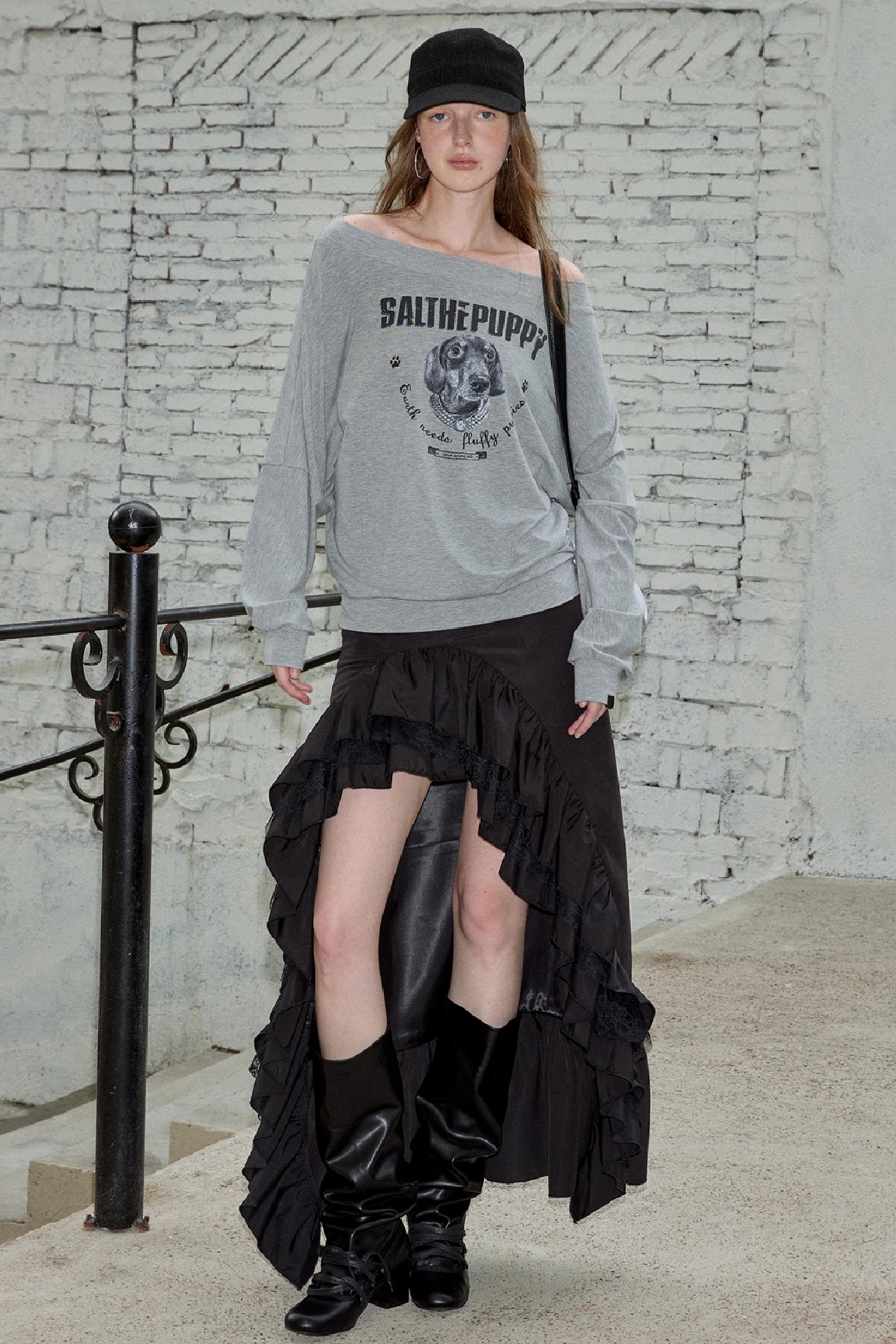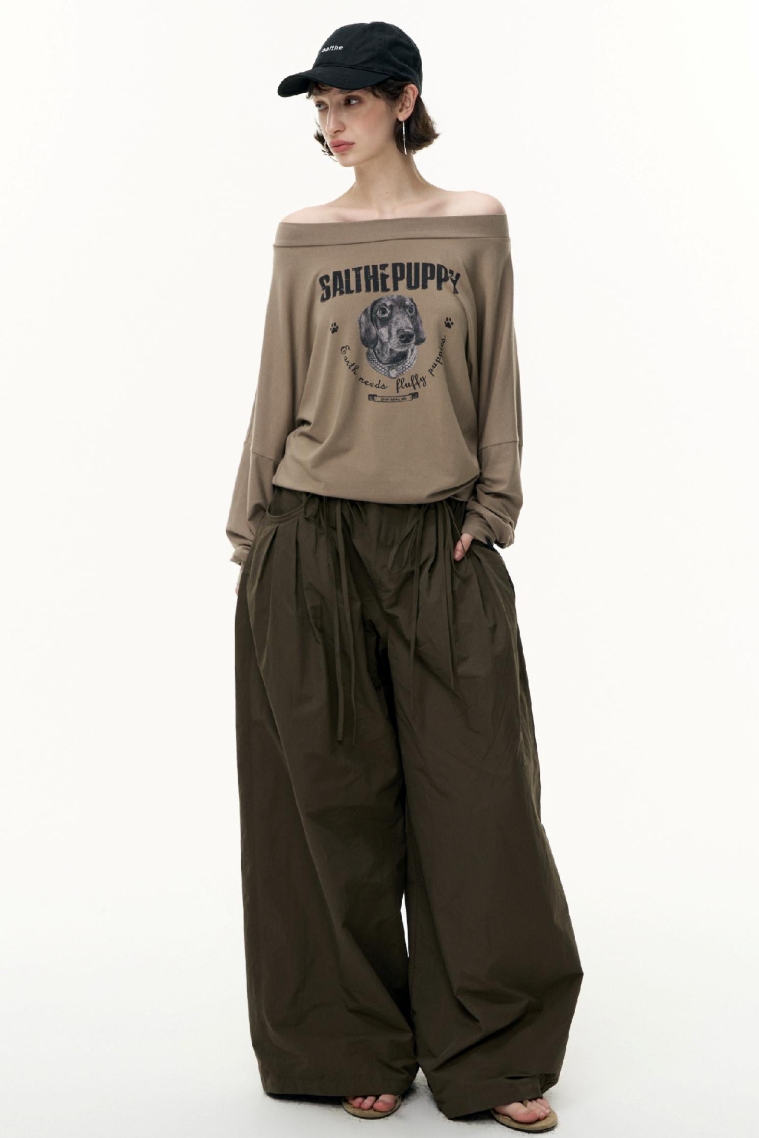 Puppy Print Slanted Shoulder T-Shirt
