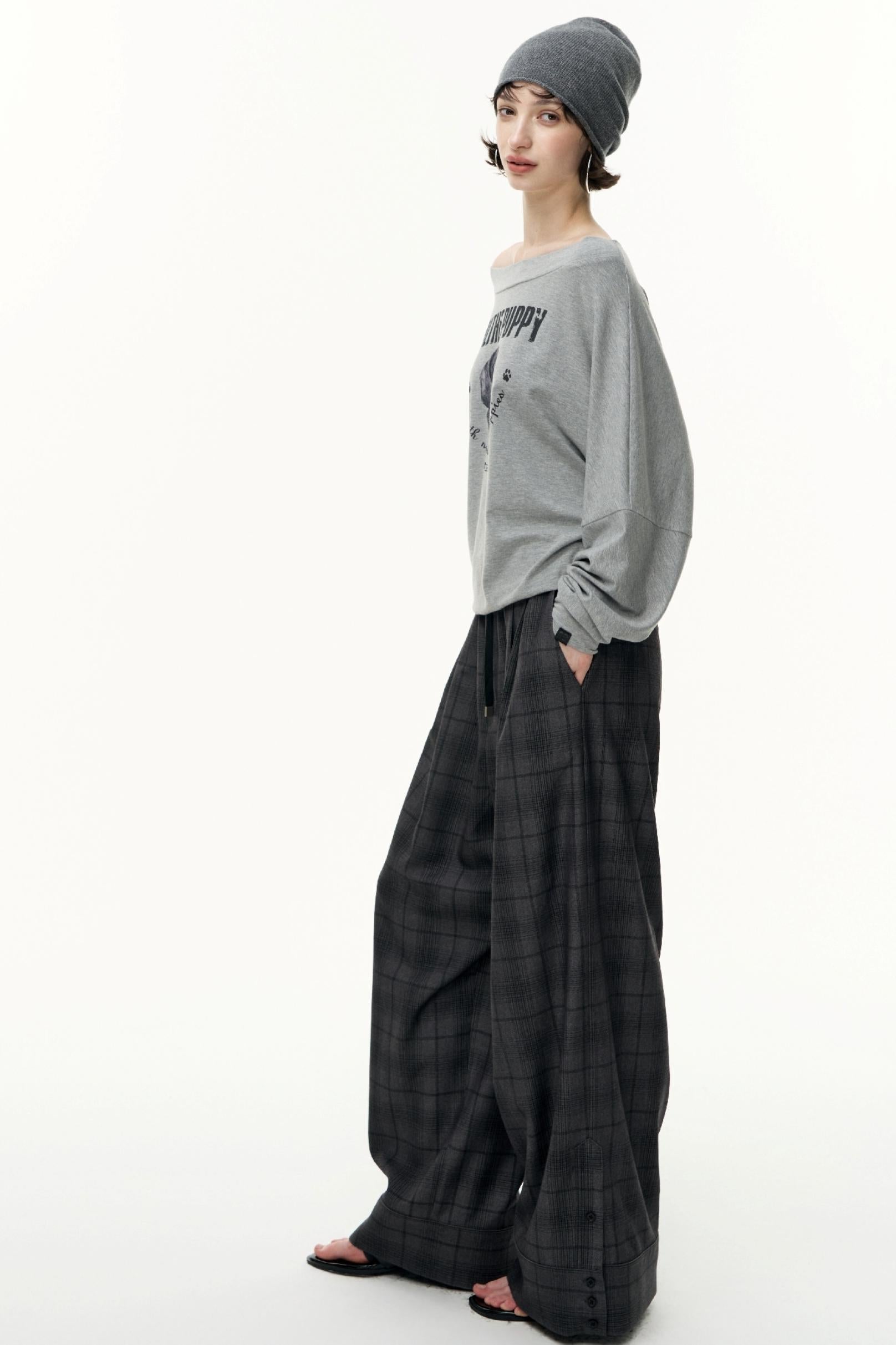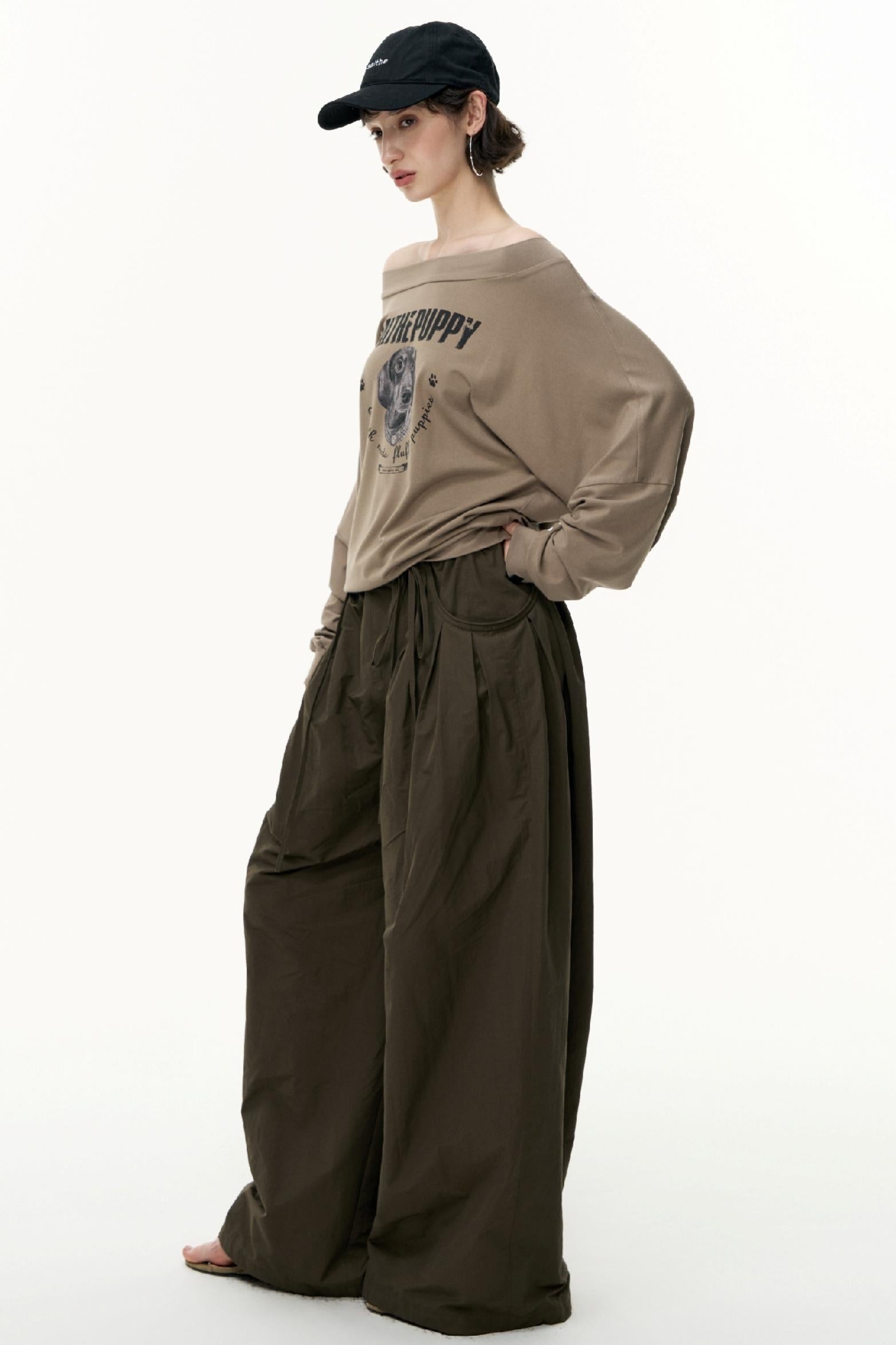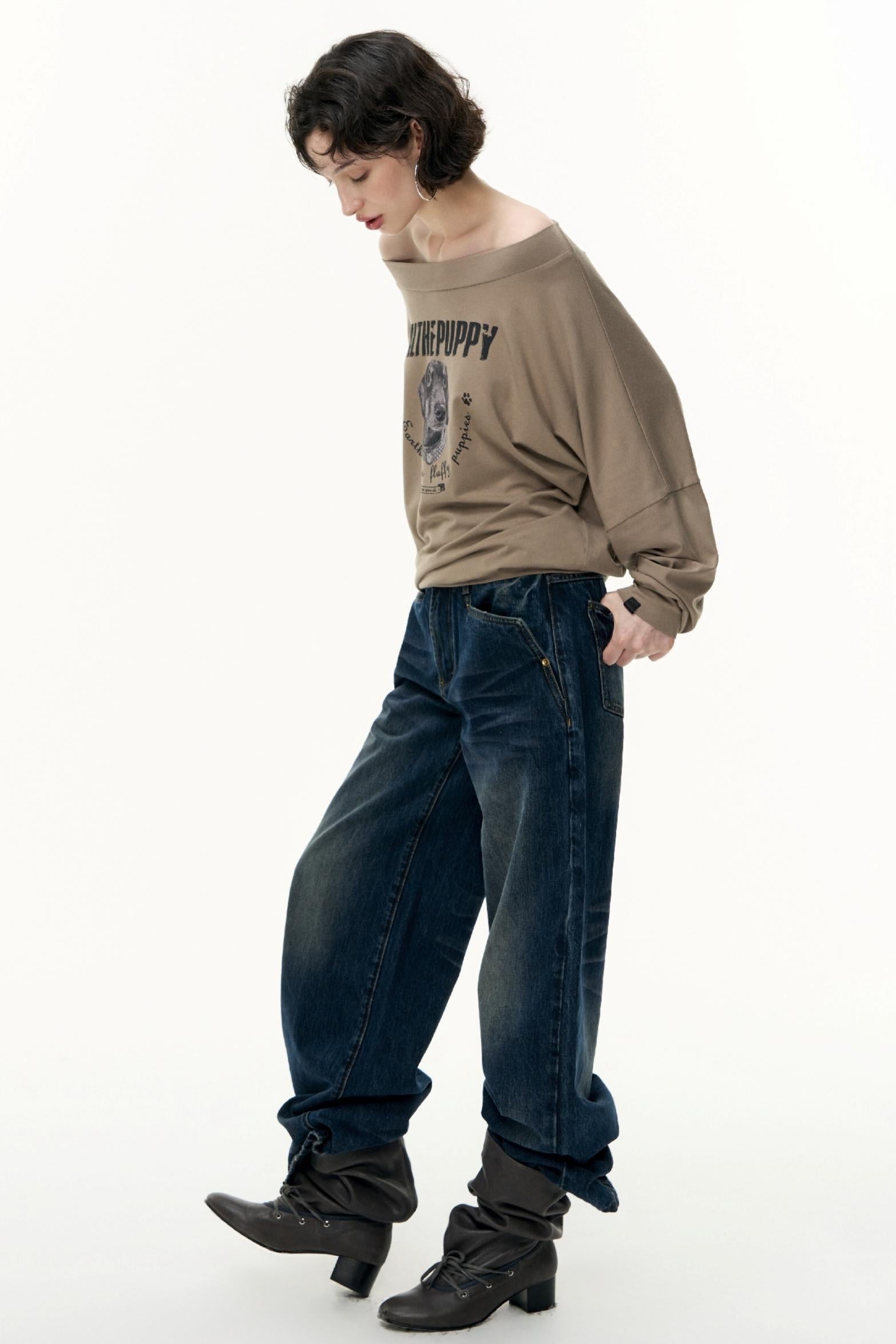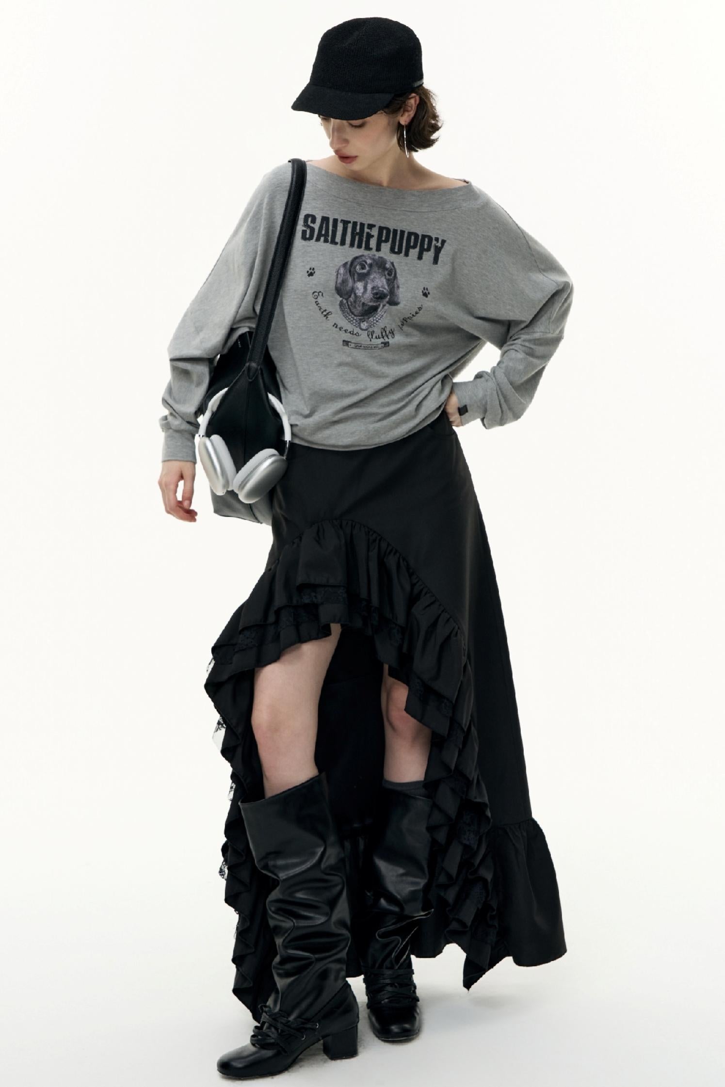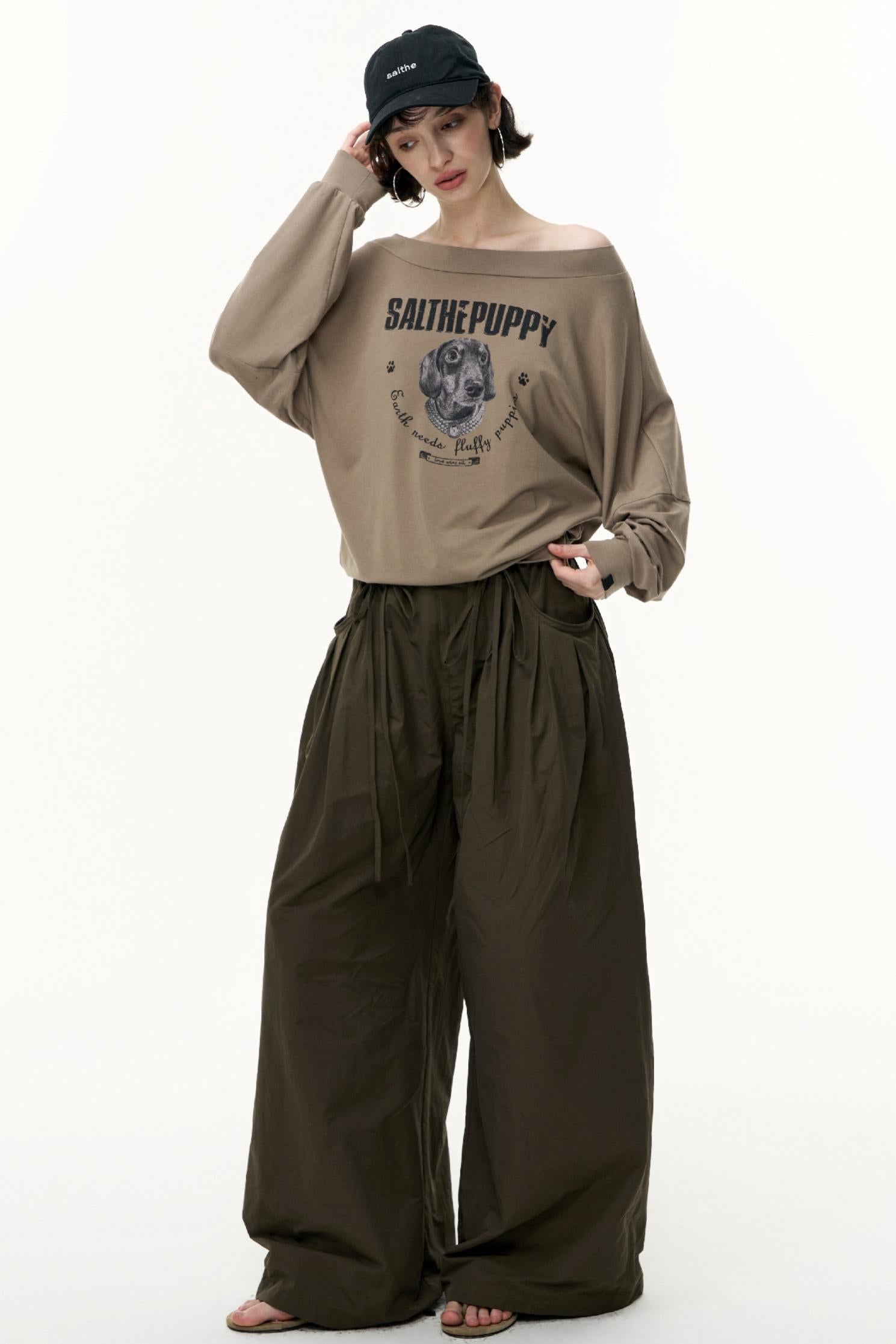 Puppy Print Slanted Shoulder T-Shirt