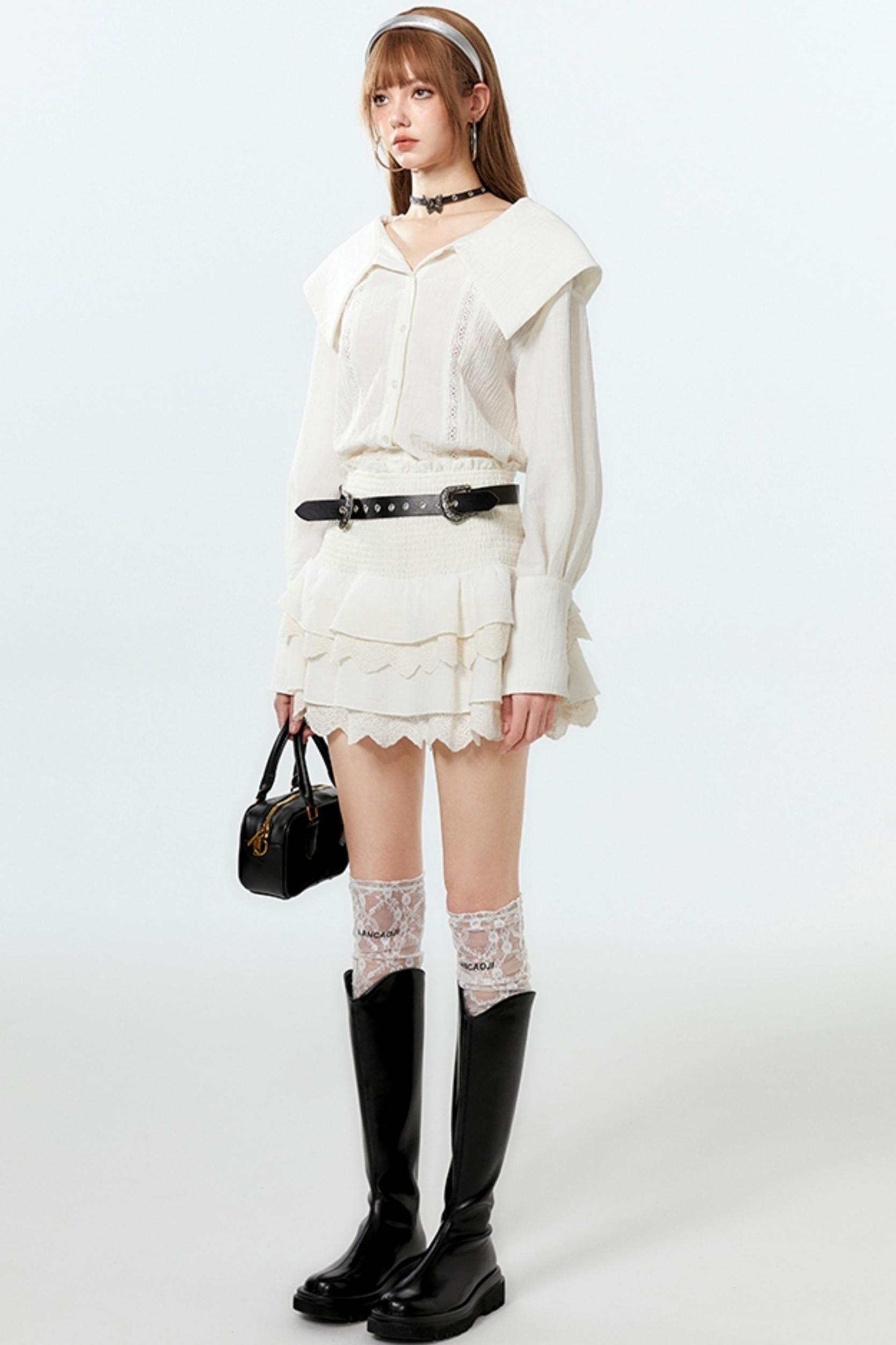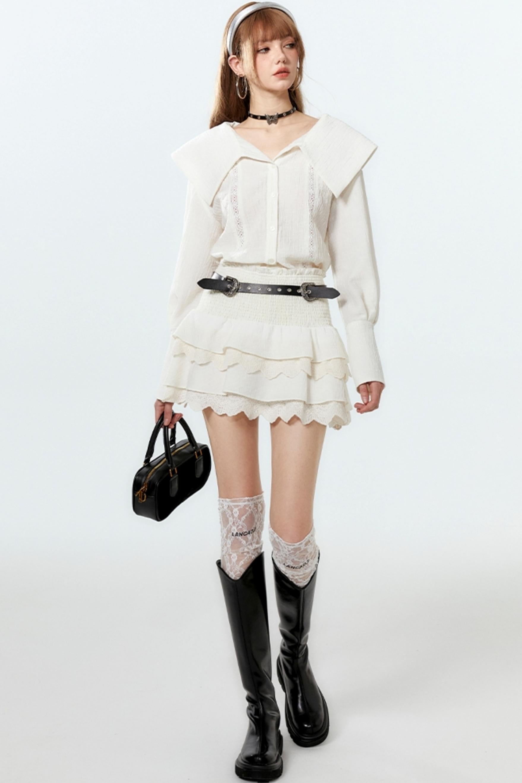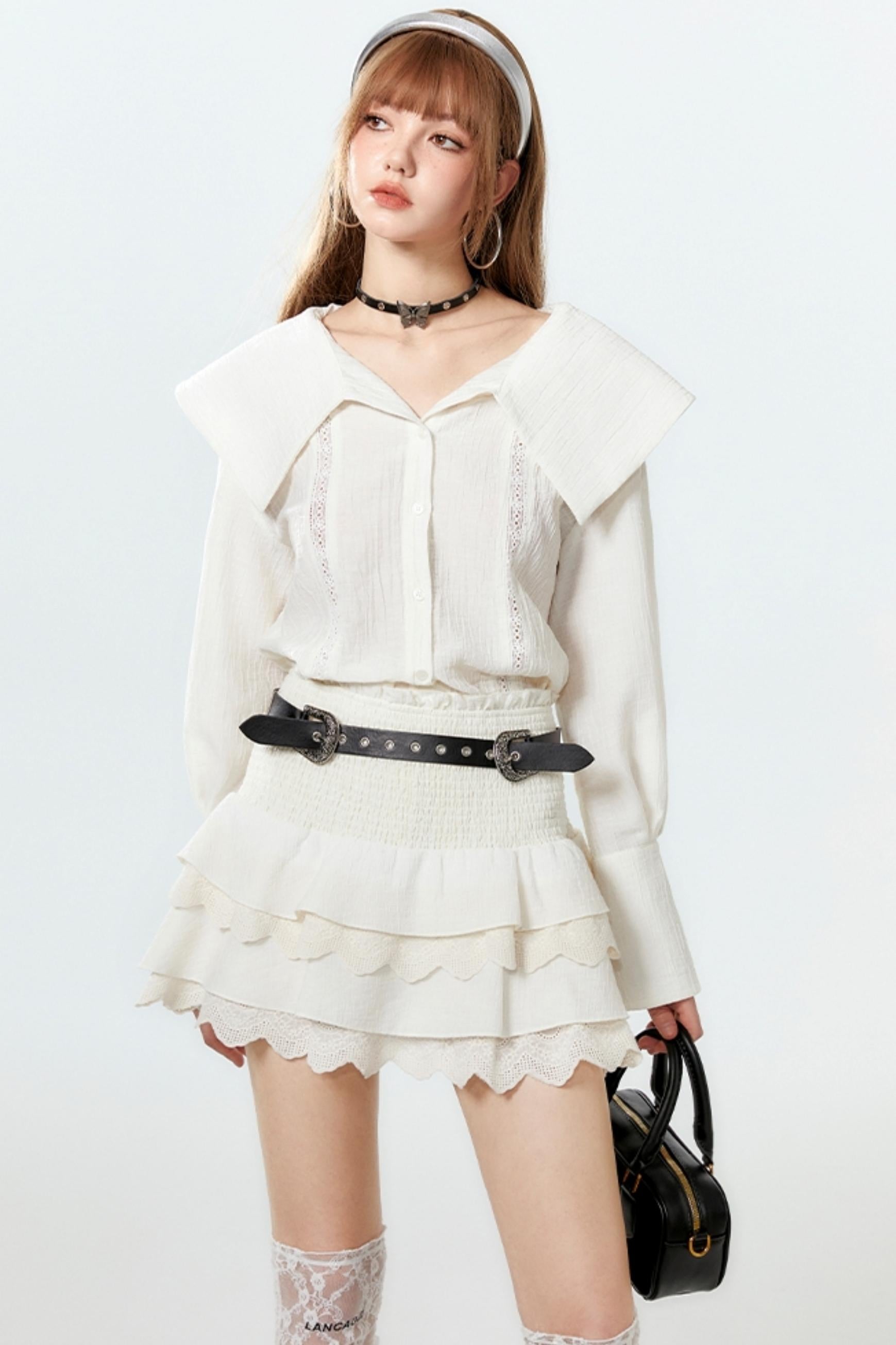 Sheer Lace Big-Collar Mint Blouse