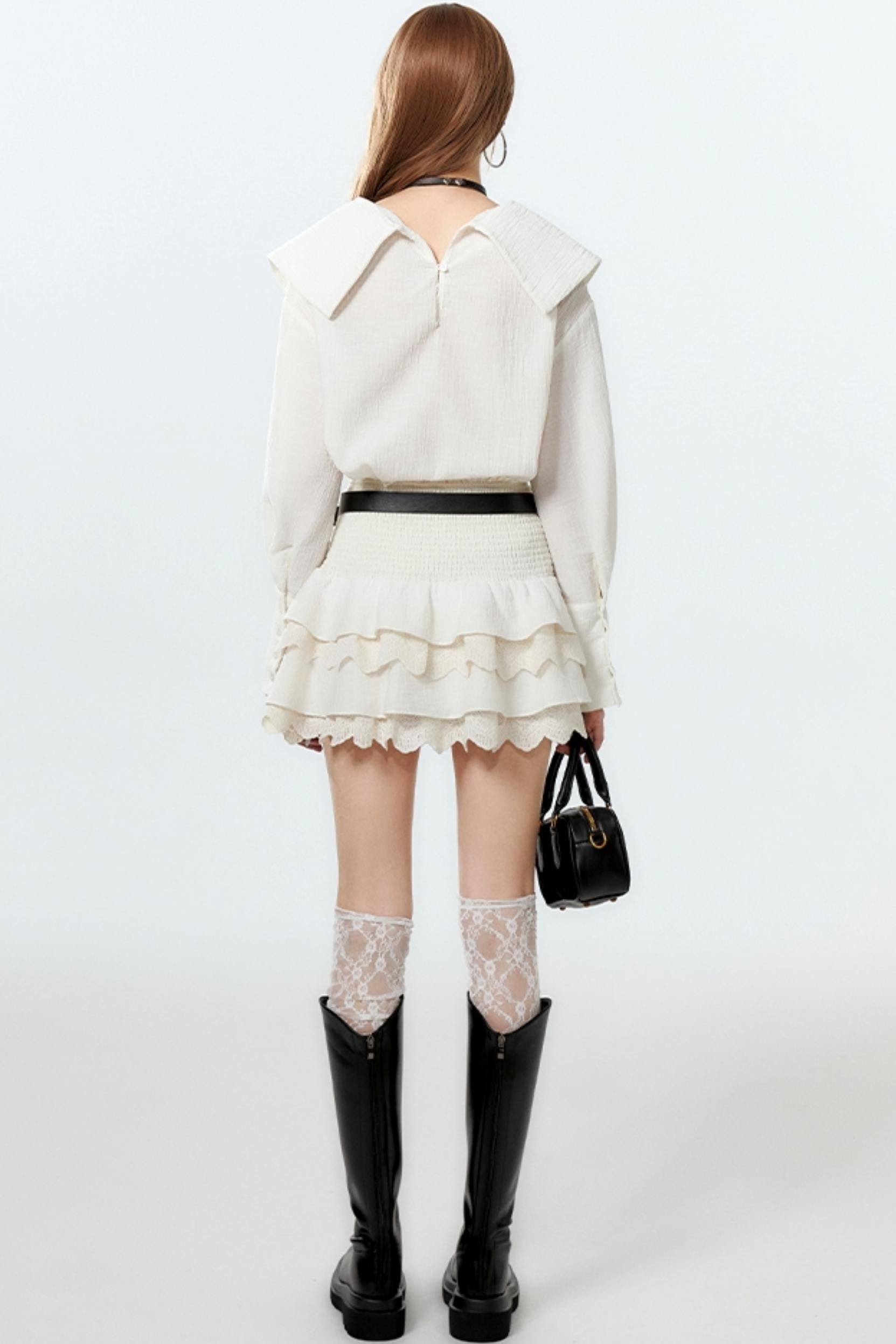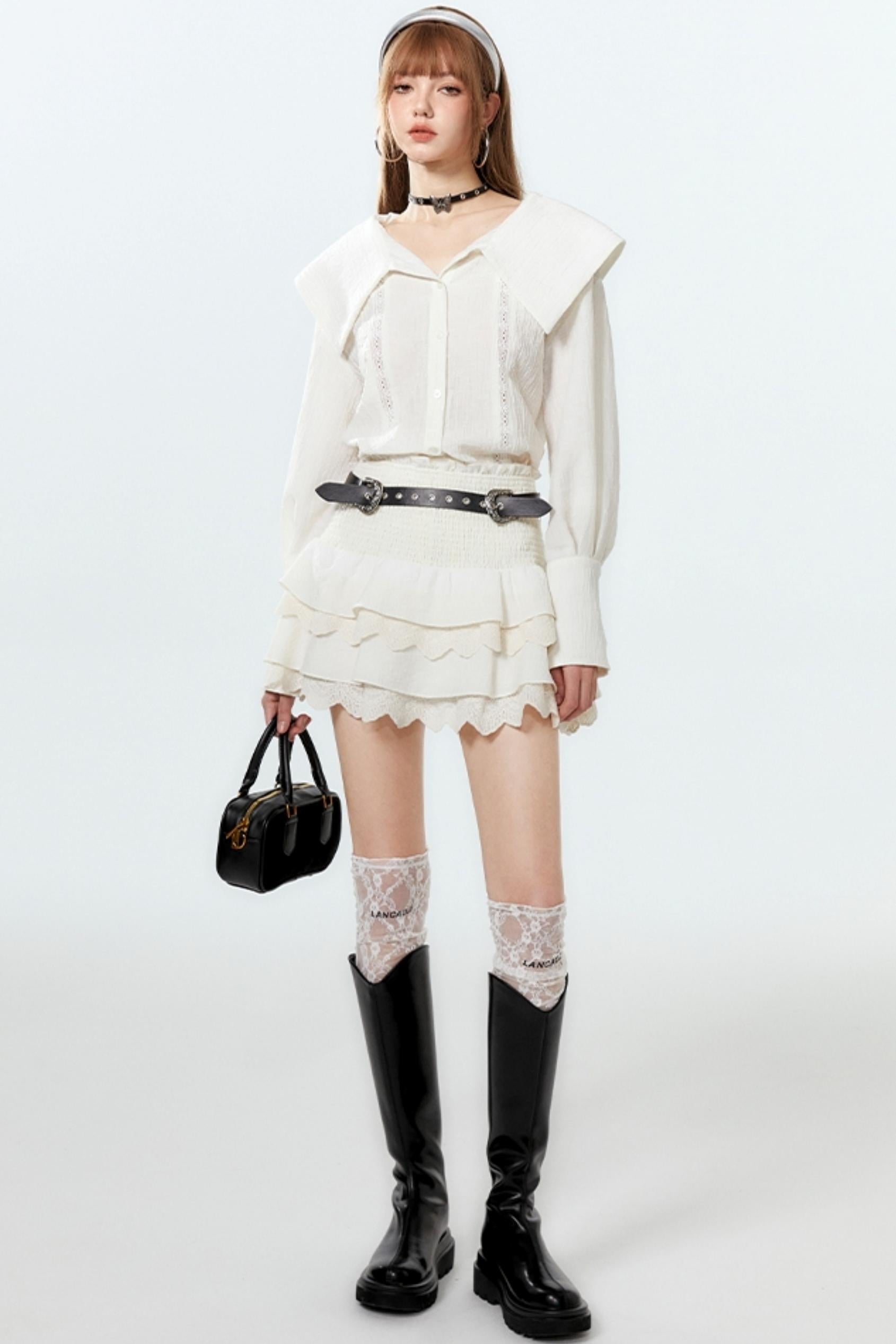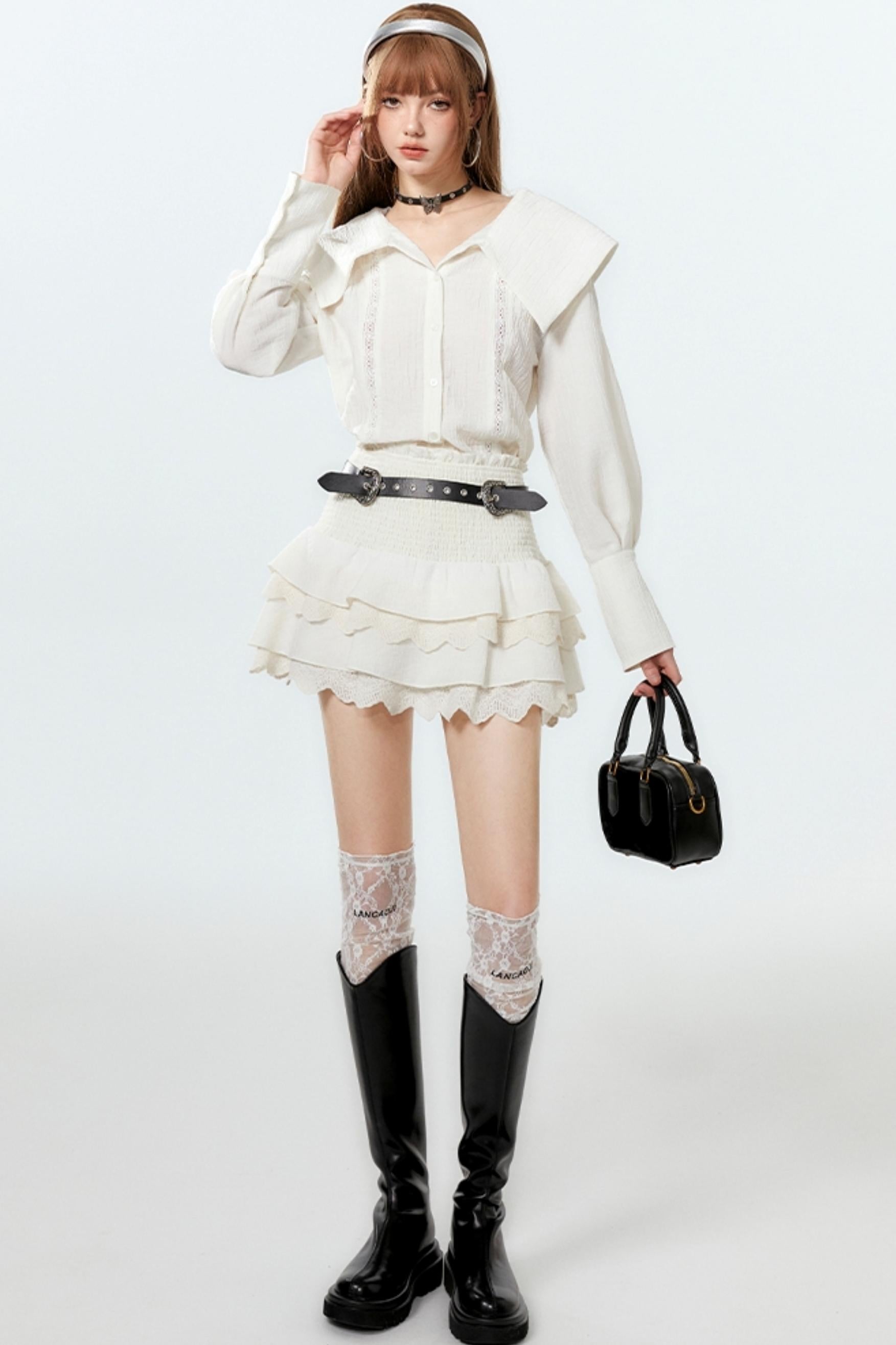 Sheer Lace Big-Collar Mint Blouse
