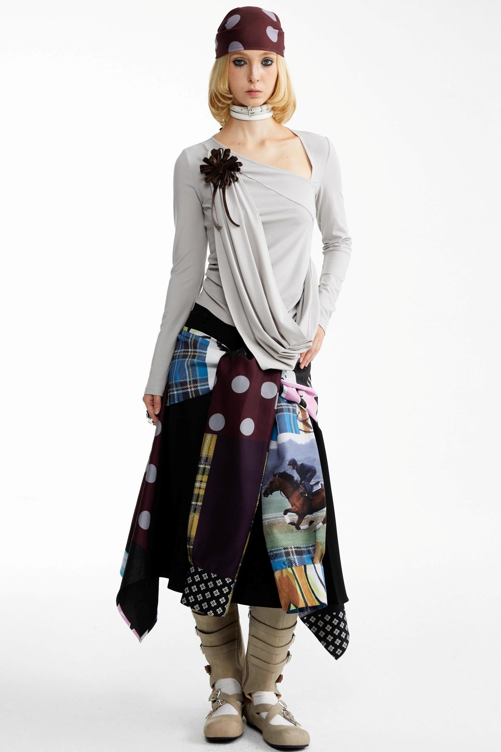 Street Print Deconstructed Stitched Skirt