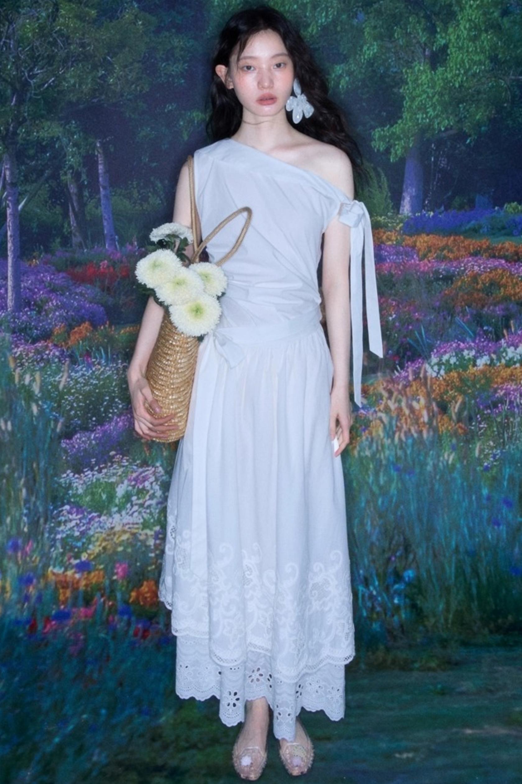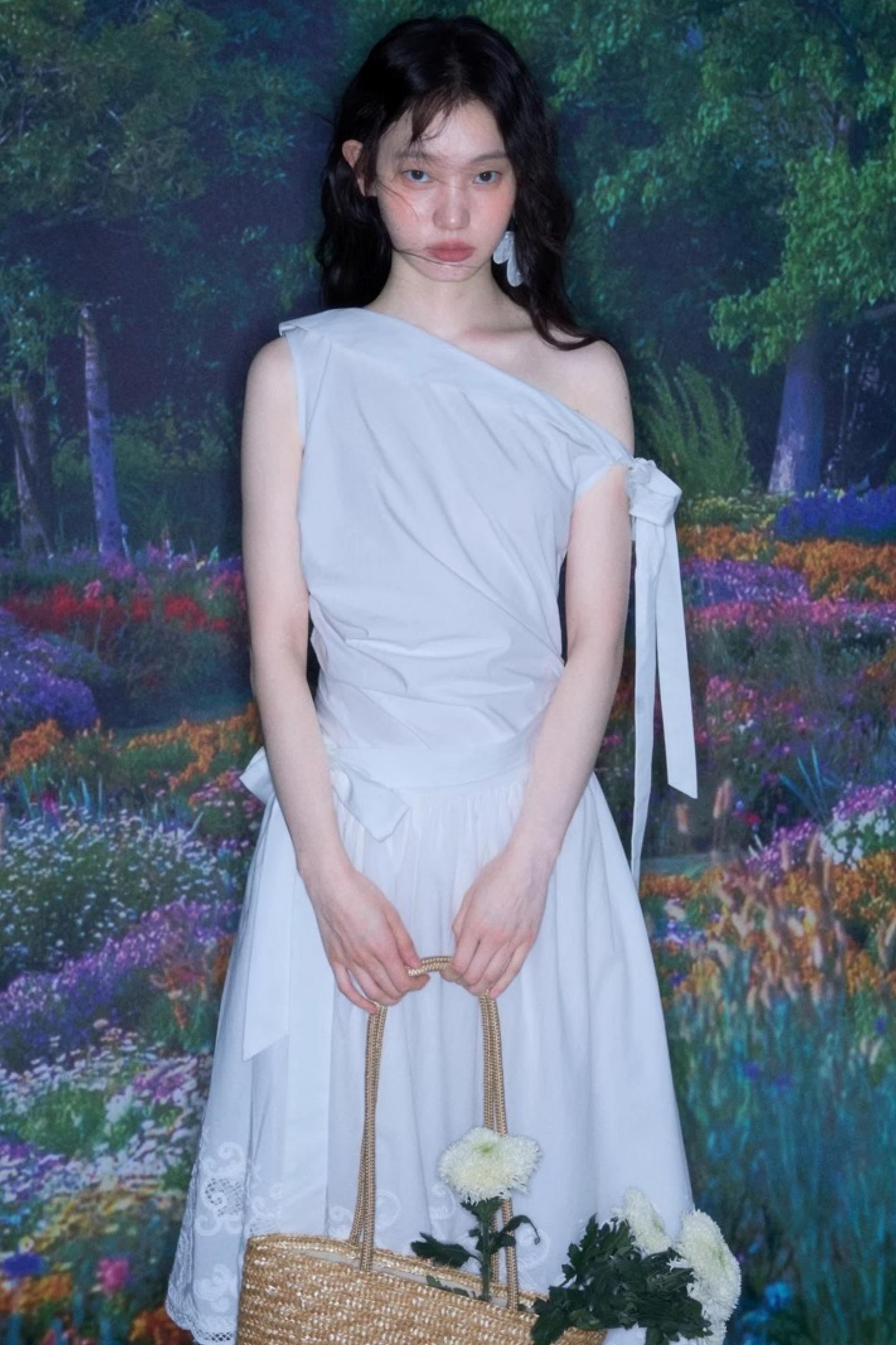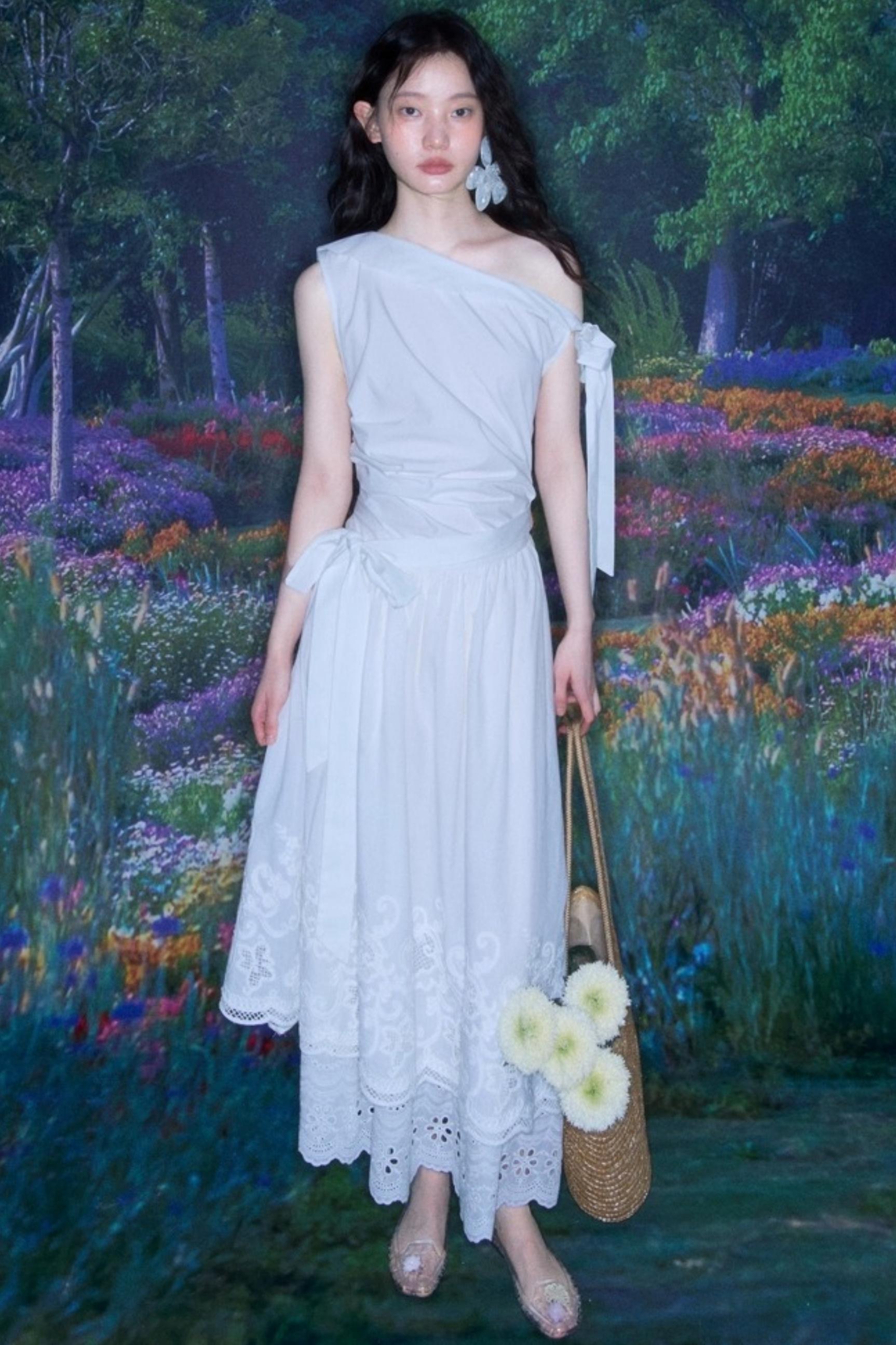 Sunshine Island Tencel Lace-Up Cinched Waist Dress