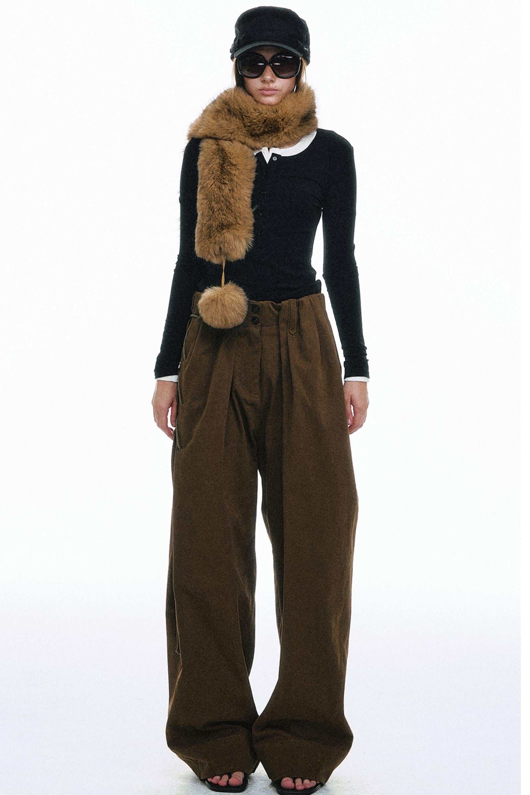 Vintage High-Waisted Cotton Trousers