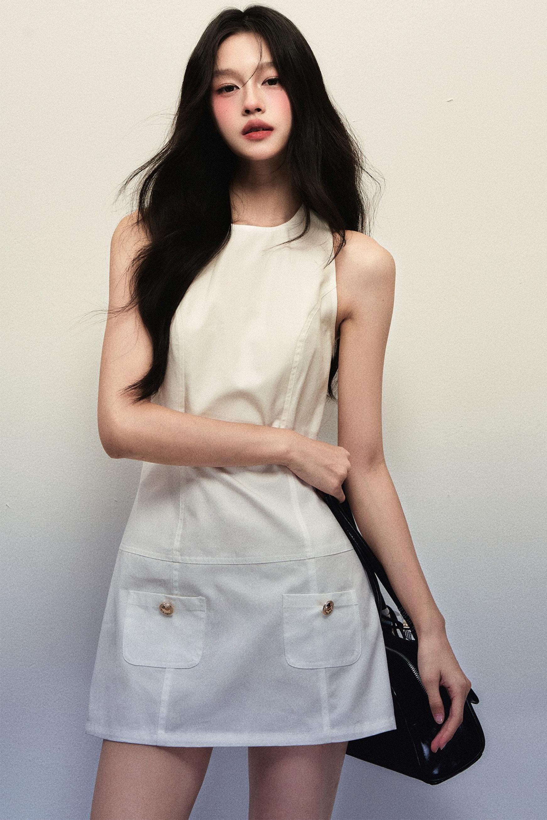 White Sleeveless Vest Dress Set-Up