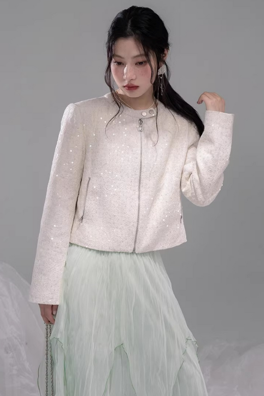 Chenwu 회색 플리츠 스커트 스웨트셔츠 세트