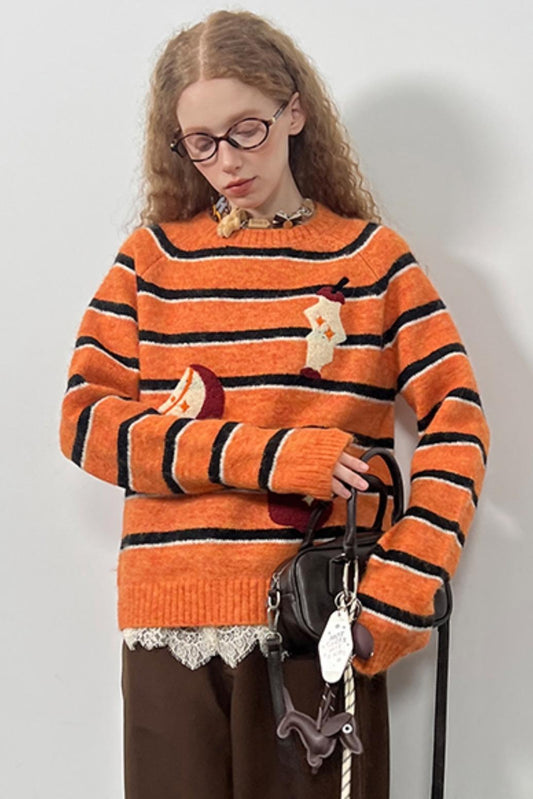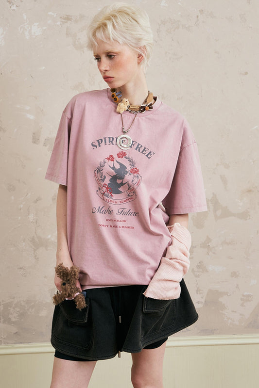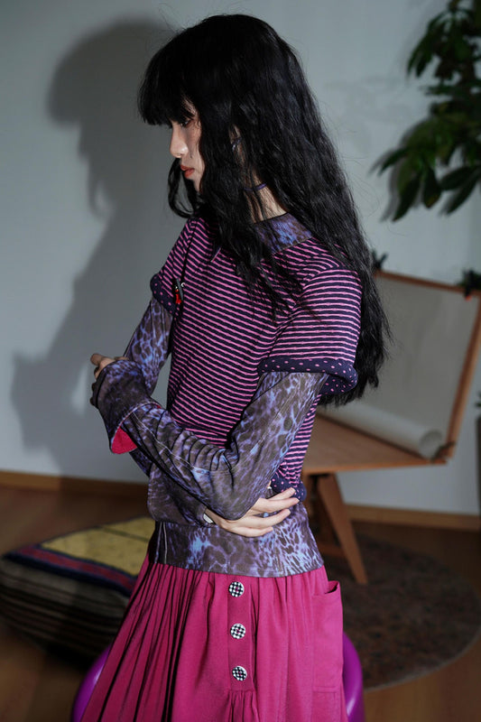 Vintage Striped Rolled Hem Short-Sleeve Top