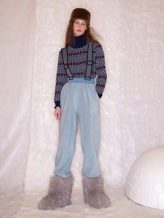 Vintage V-Neck Lace-Up Knitted Print Long Sleeve T-Shirt