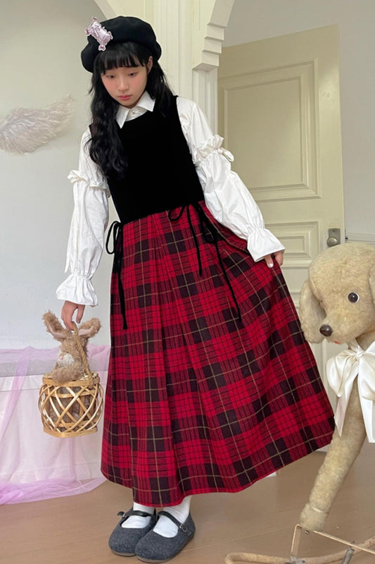 Vintage Velvet Plaid Vest Dress