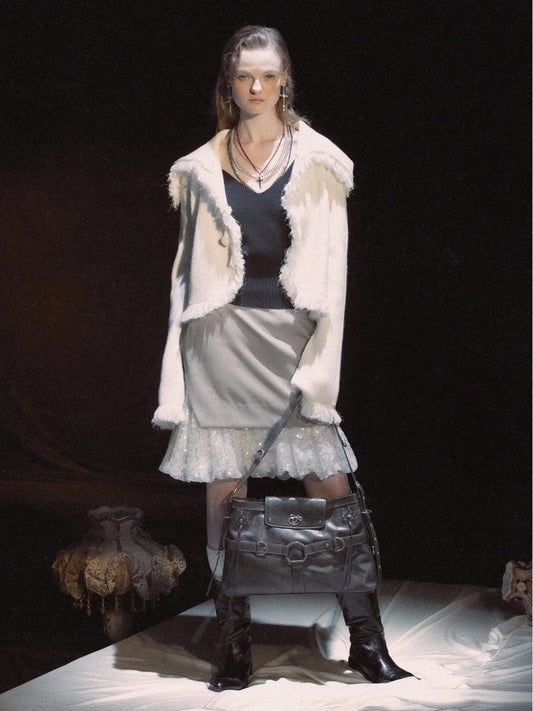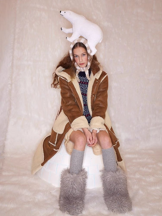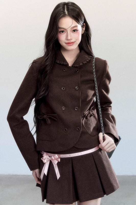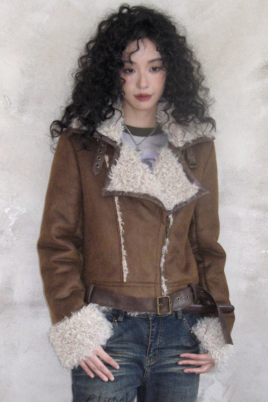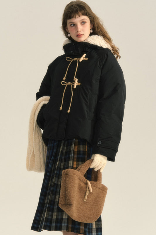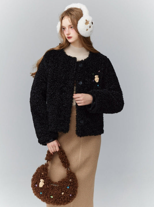 따뜻한 갈색 검은색 플러시 짧은 재킷