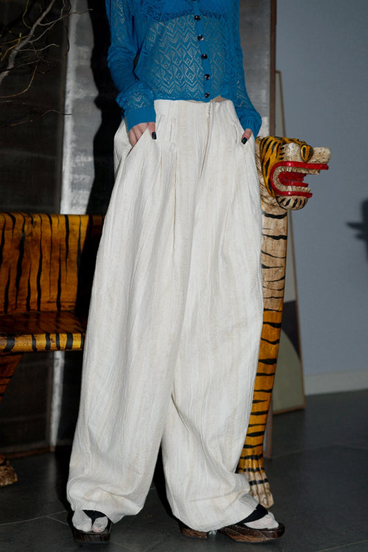세탁된 리넨-코튼 와이드 팬츠