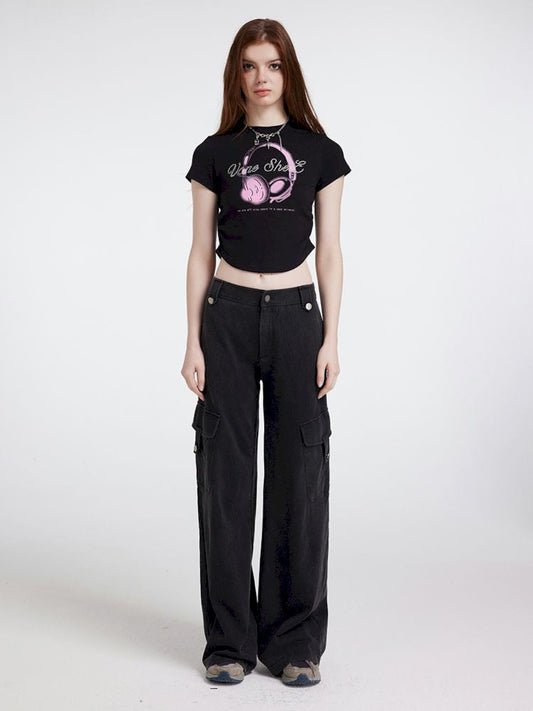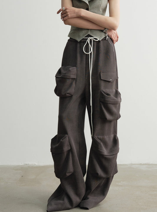 세탁된 루즈 스트레이트 캐주얼 팬츠