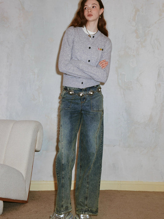 Washed Nail Beads Loose Scimitar Jeans