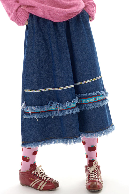 세탁된 태슬 데님 미니 스커트