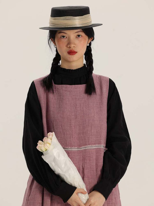 세탁된 리넨 조끼 긴 드레스