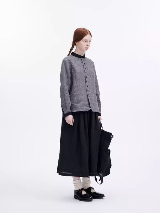 세탁된 리넨 라운드 칼라 스트라이프 셔츠