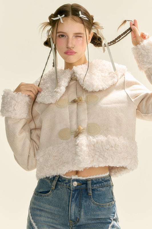 흰 사슴 미로 양모 코트