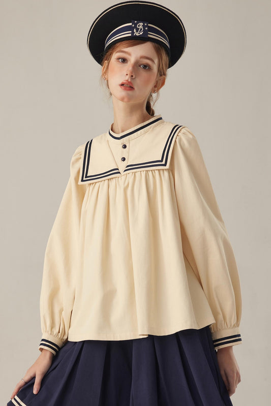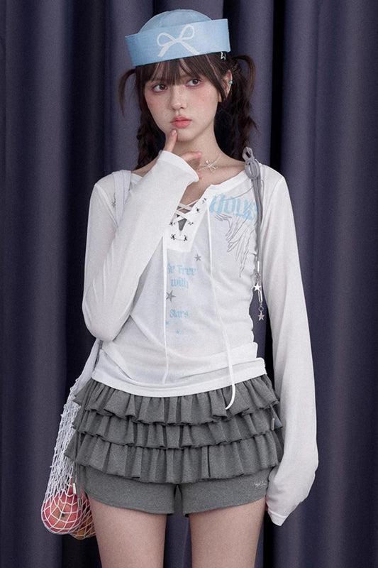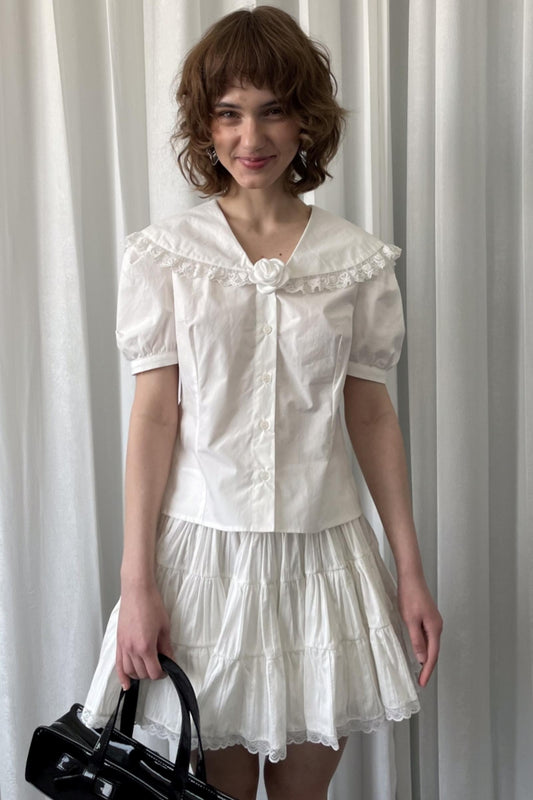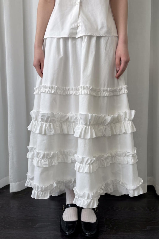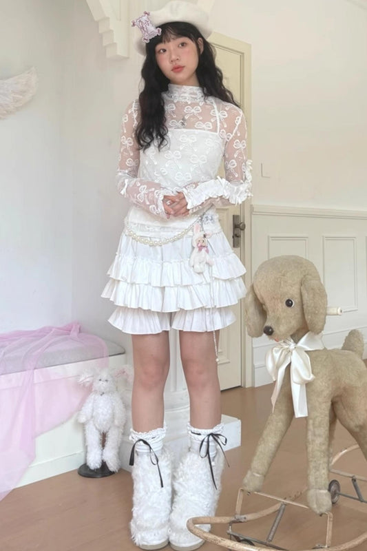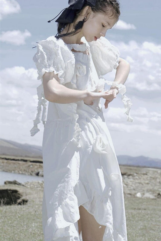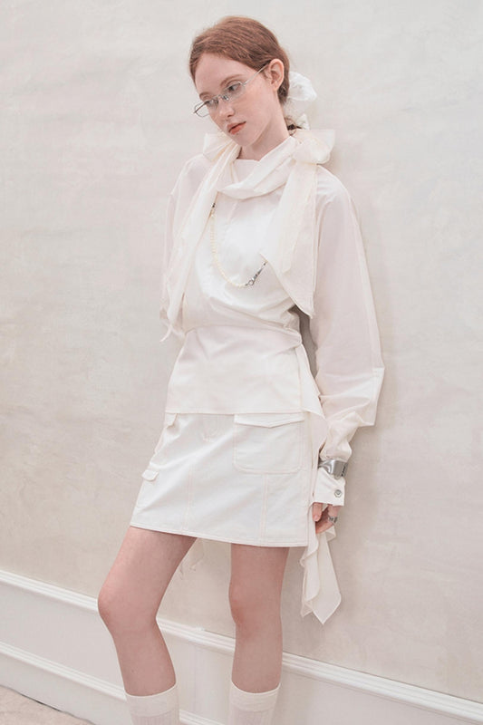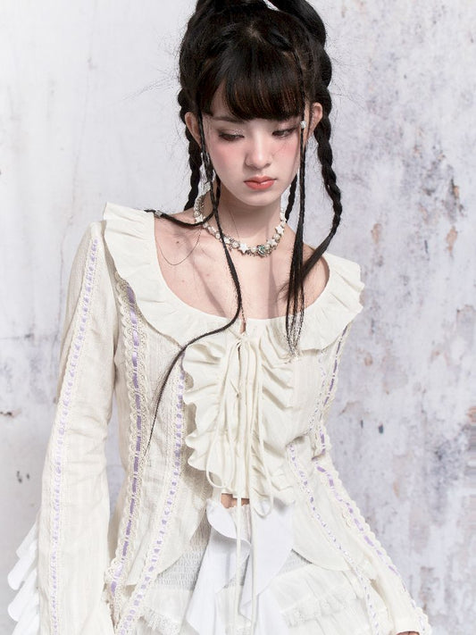 White Cloud Gauze Ruffled Shirt Set-Up
