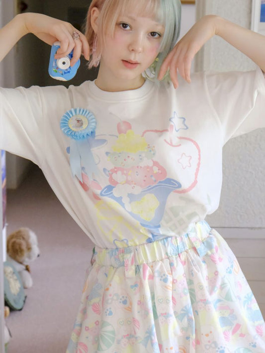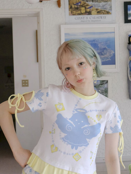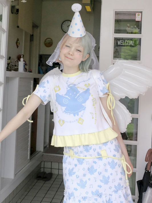 화이트 엔젤 귀여운 프린트 소녀 티셔츠