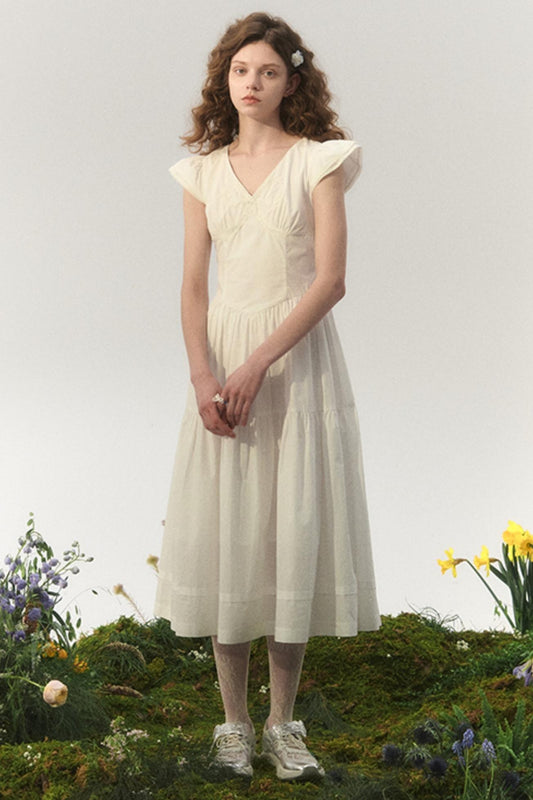 White Bow Flutter Sleeve Dress