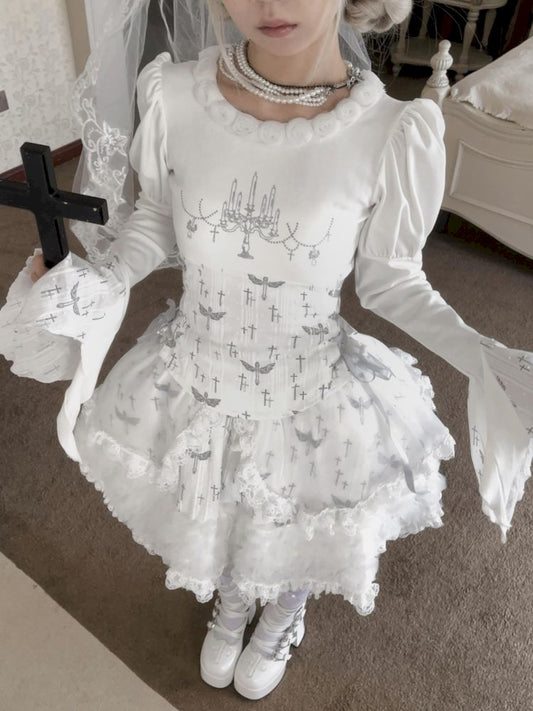화이트 케이크 퍼프 자수 스커트