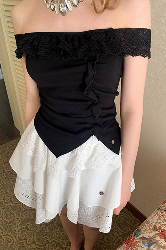 흰색 나비 레이스 불규칙 원피스