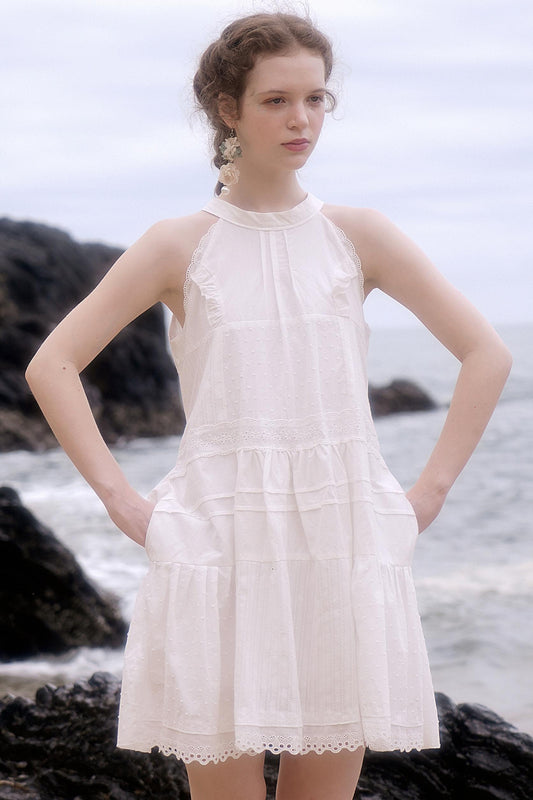 White Cotton Ruffle Dress