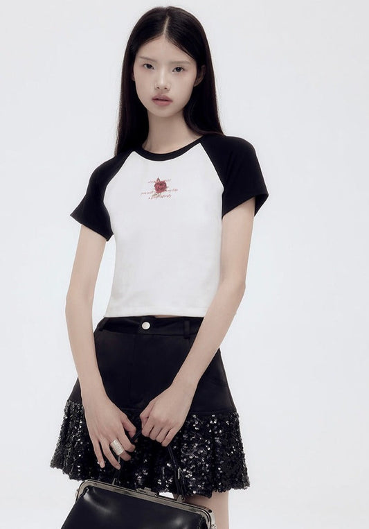 보태니컬 패턴 숏 라운드넥 티셔츠