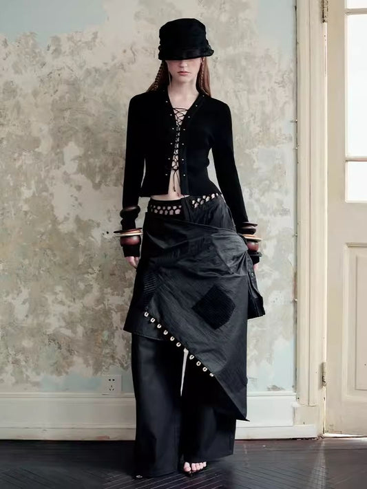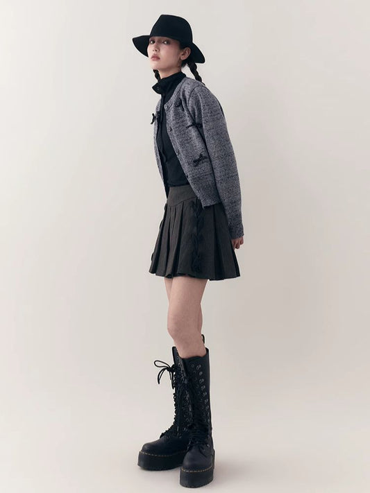 브론즈 리벳 땋은 로프 중공 얇은 짧은 니트 스웨터