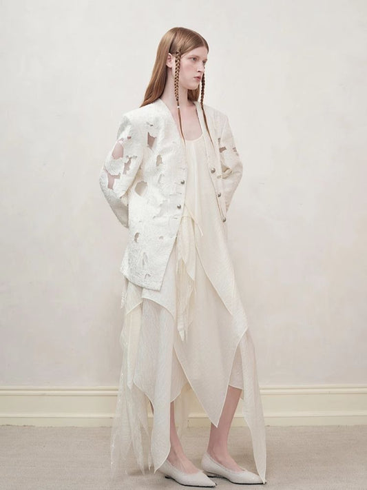 비즈 장식 얼룩덜룩한 속이 빈 자카드 블레이저