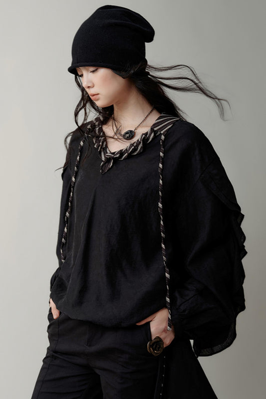 가을 텐셀 러플 긴소매 셔츠