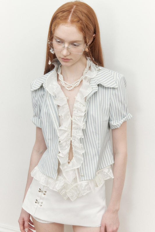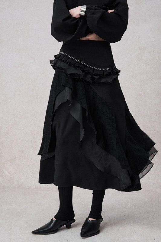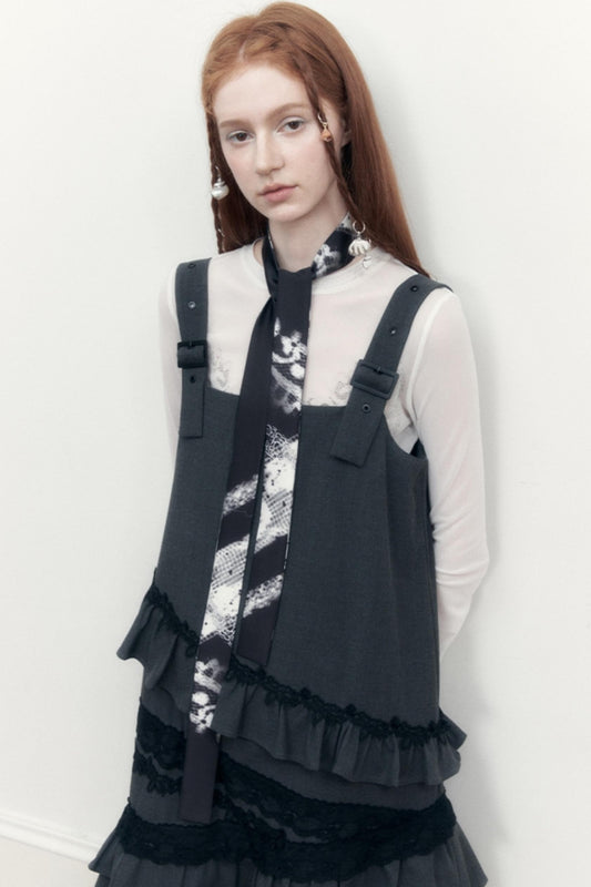 비대칭 레이스 오간자 스커트