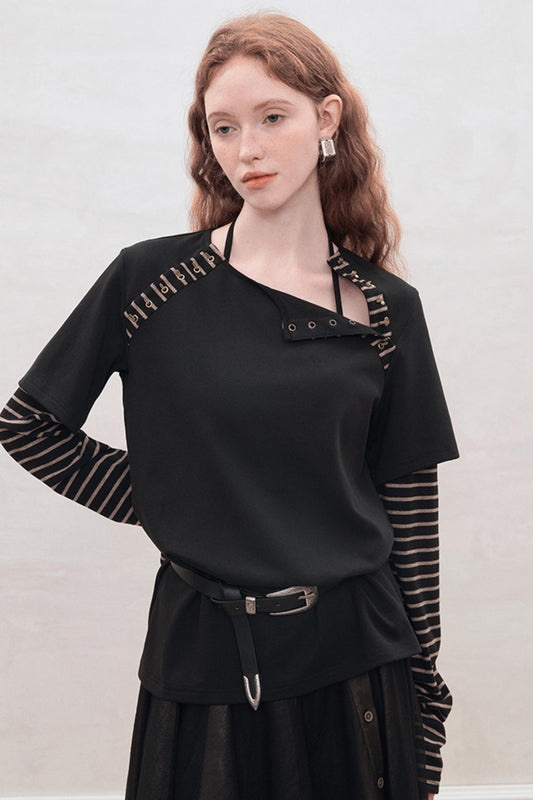 블랙 스트라이프 디자인 티셔츠