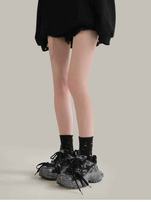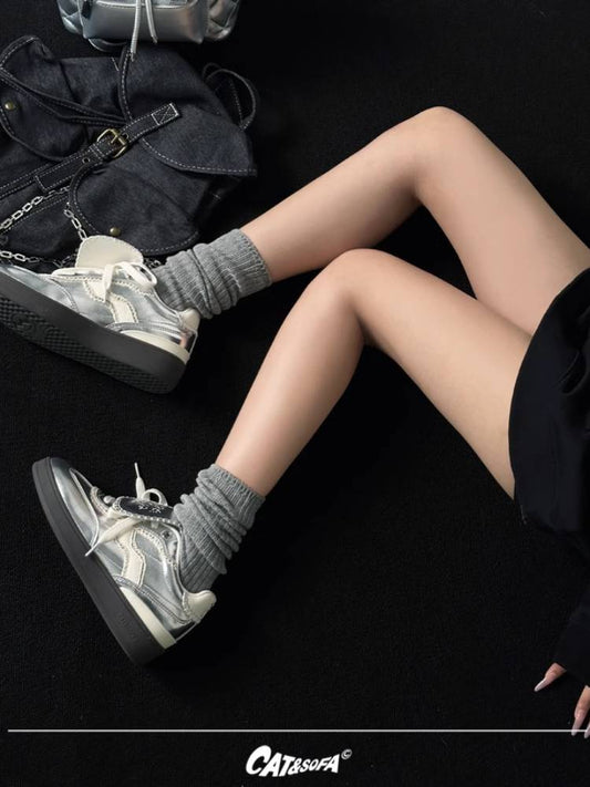 고전주의 조각 트위스트 새틴 패널 PU 스커트