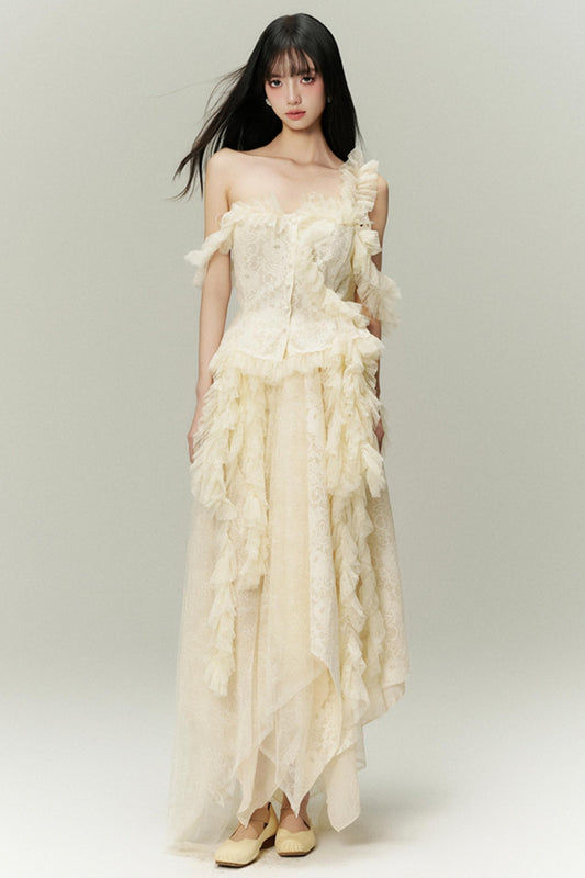 슬림 실루엣 레이스 스커트 셋업