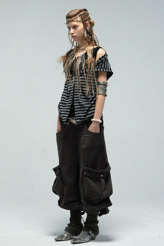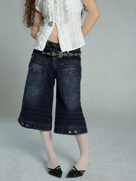 데미지 가공 빅 포켓 크롭 데님 팬츠
