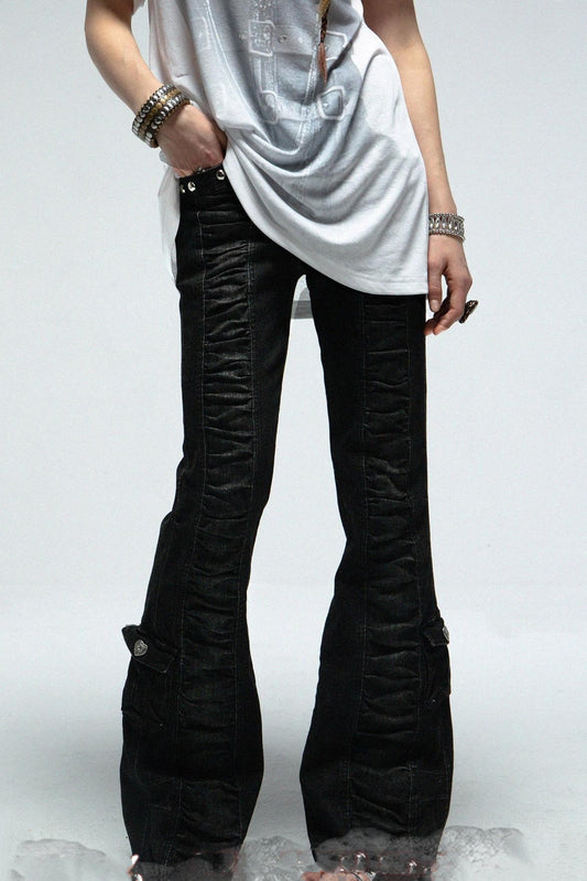 블랙 그레이 데님 스택 플레어 팬츠