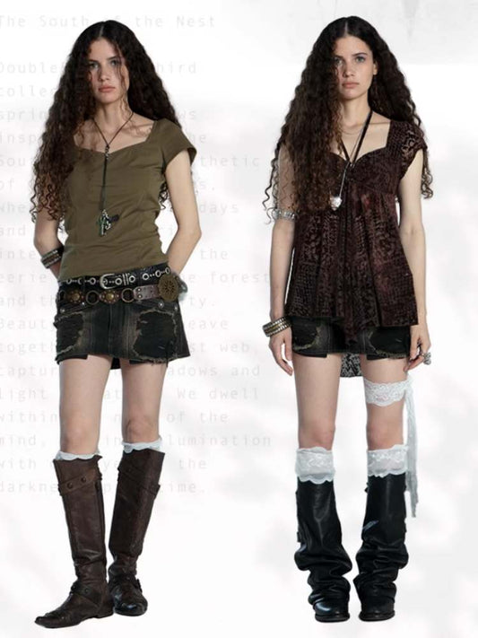 데미지 워싱 데님 미니 스커트