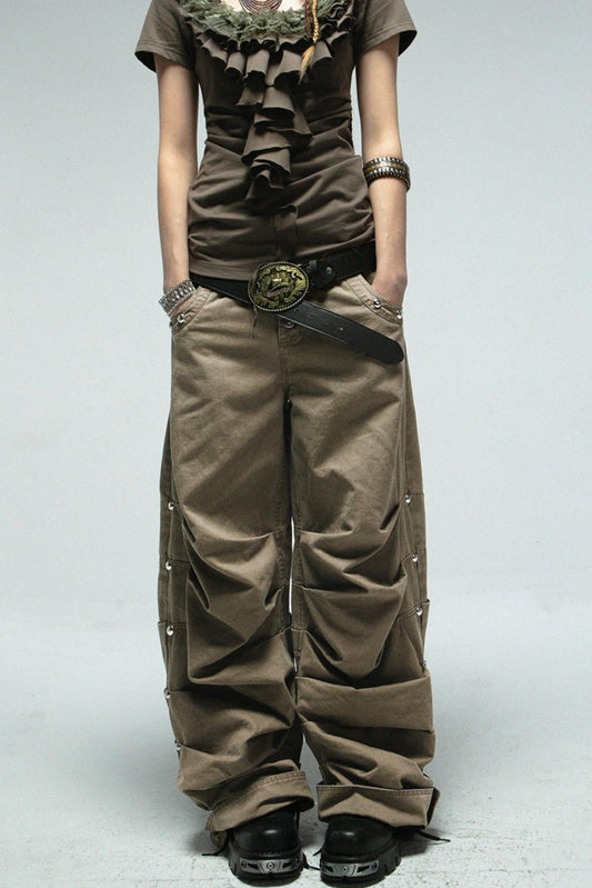디스트레스 플리츠 면 바지