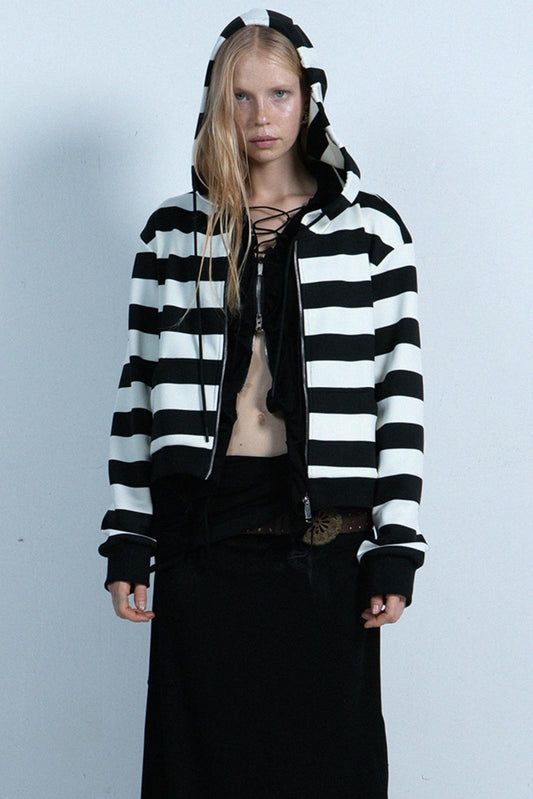 대비 스트라이프 지퍼 크롭 스웨트셔츠