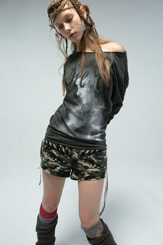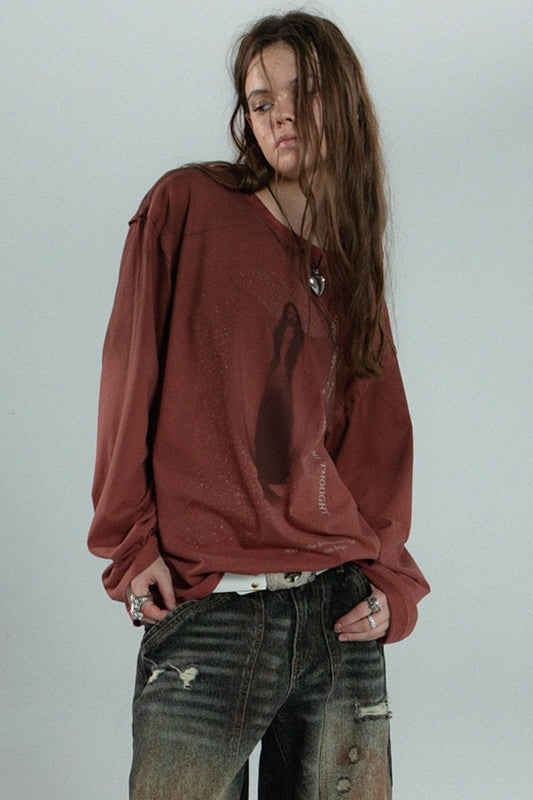 드롭 숄더 펑크 긴팔 티셔츠