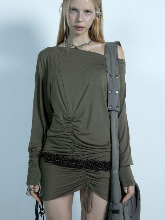 드로스트링 원 숄더 티셔츠