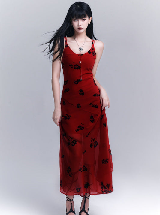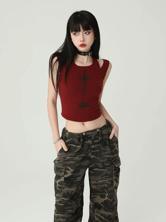 아메리칸 스위트 멜빵 레드 베스트 탑